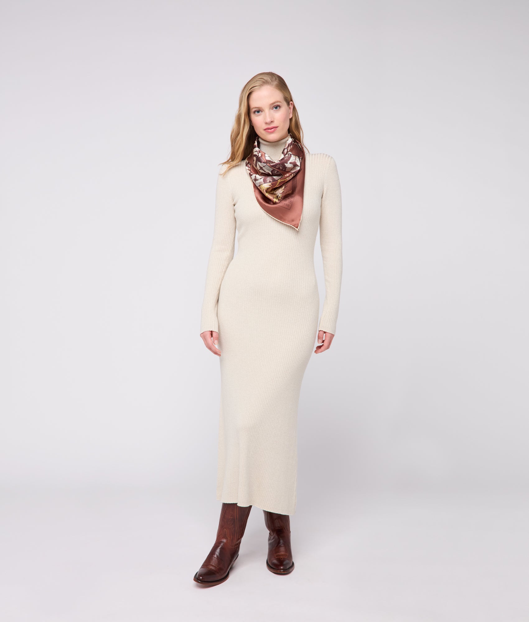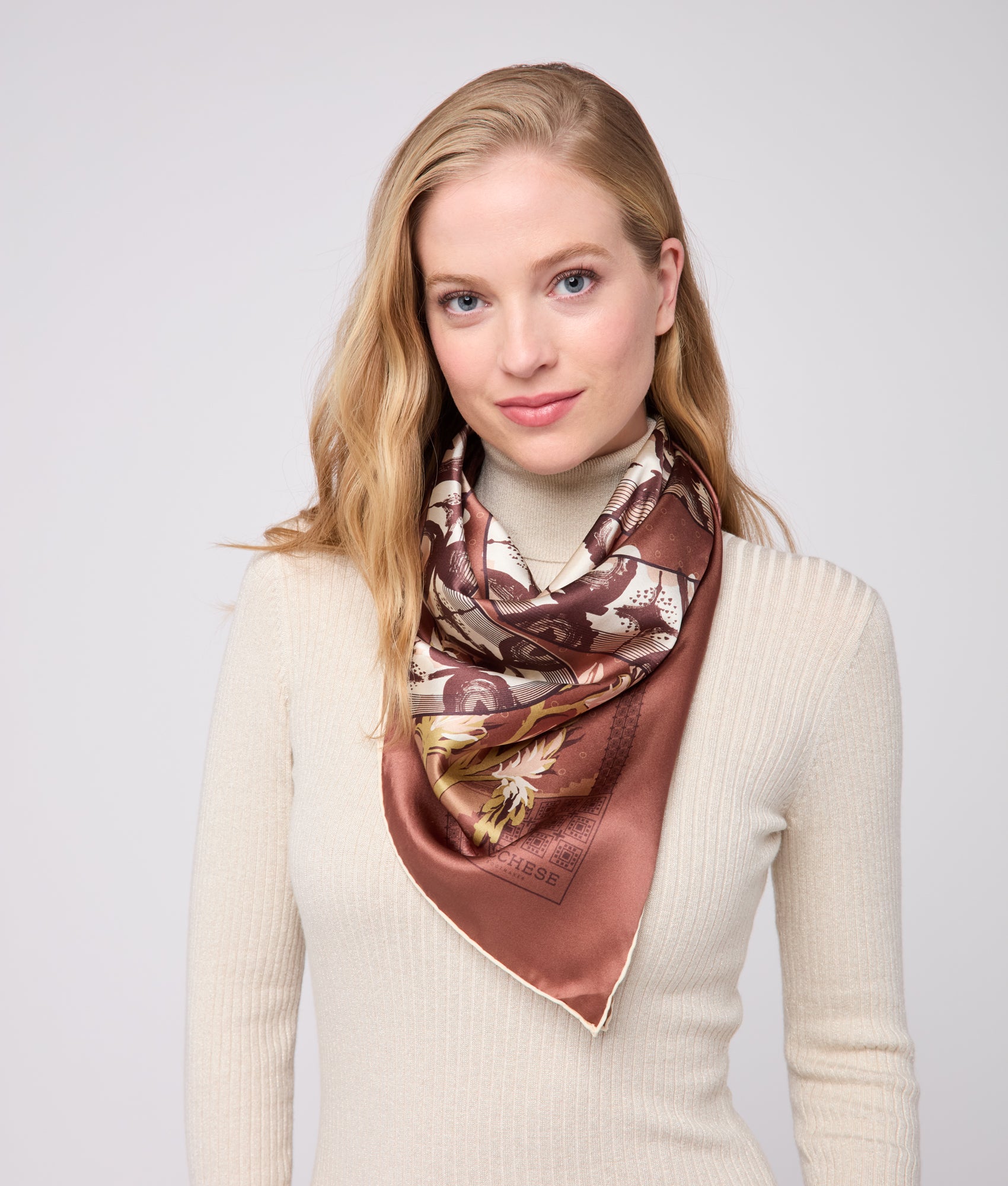 The Diamondback Scarf features a double-sided geometric snake motif ?? a nod to one of the West’s most iconic creatures. The diamondback has long stood as a symbol of resilience. rhythm. and respect for the land. its pattern as captivating as its presence. Rendered in rich brown and green. this scarf adds a storied touch whether worn around the neck. draped. or tied.