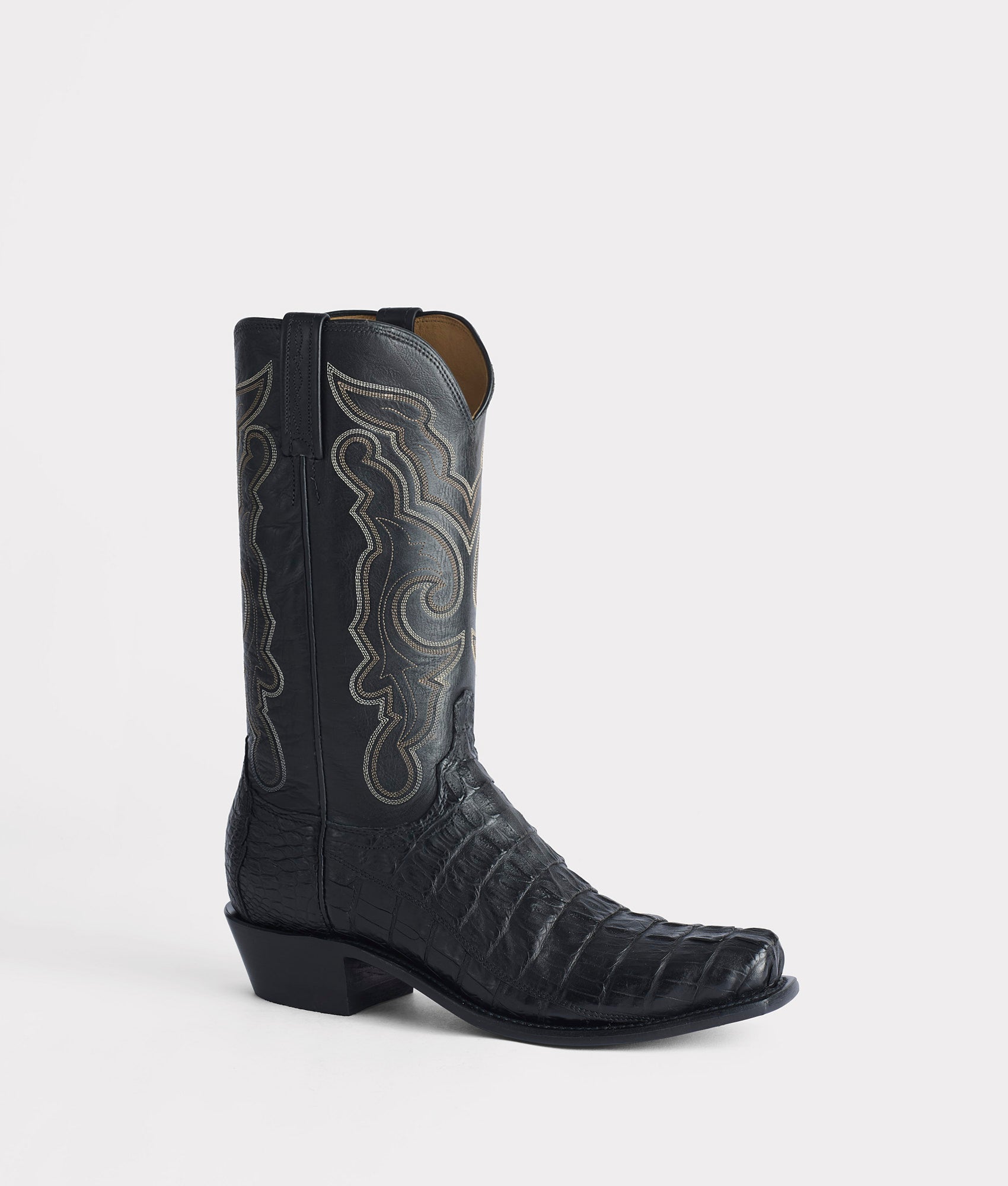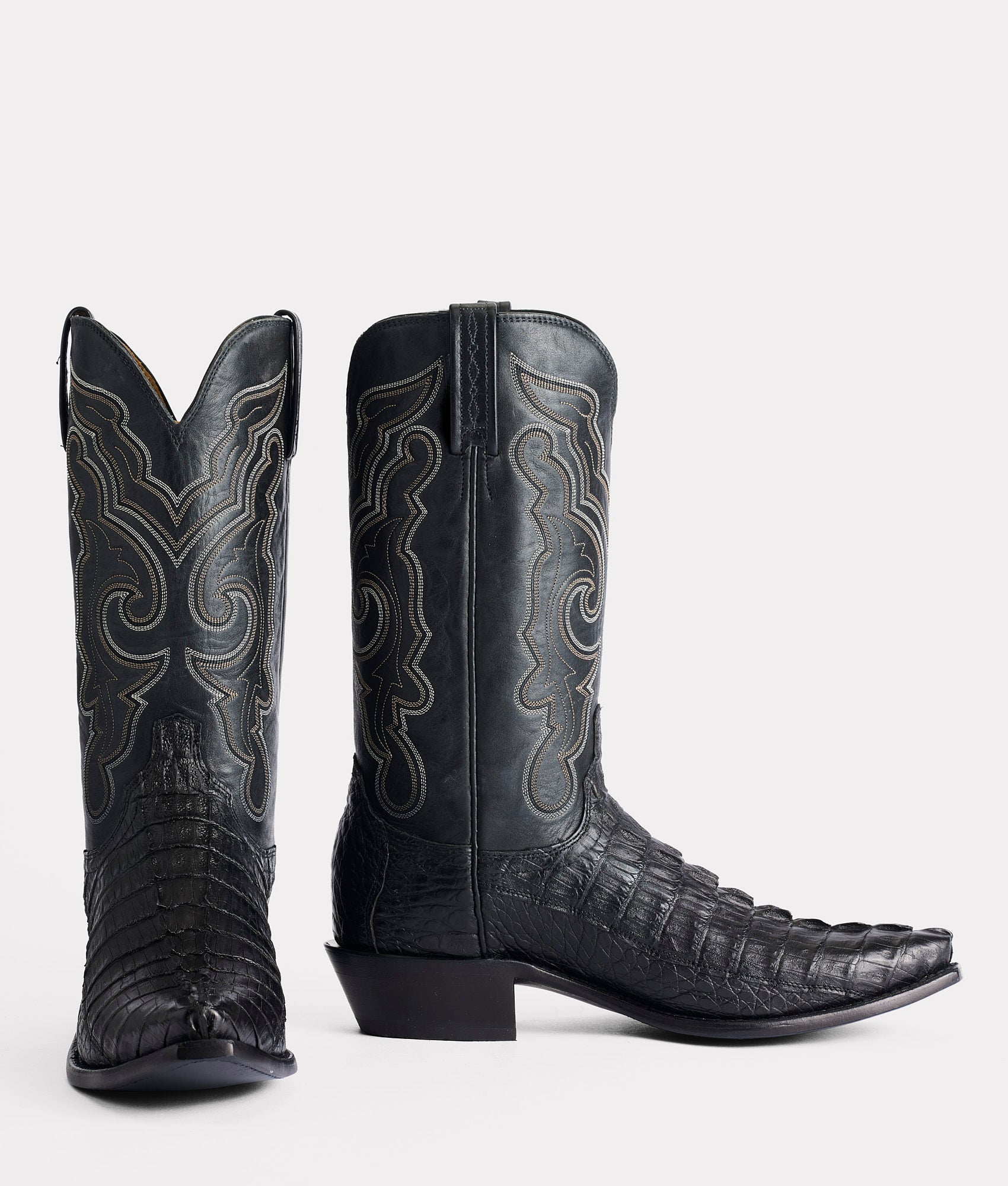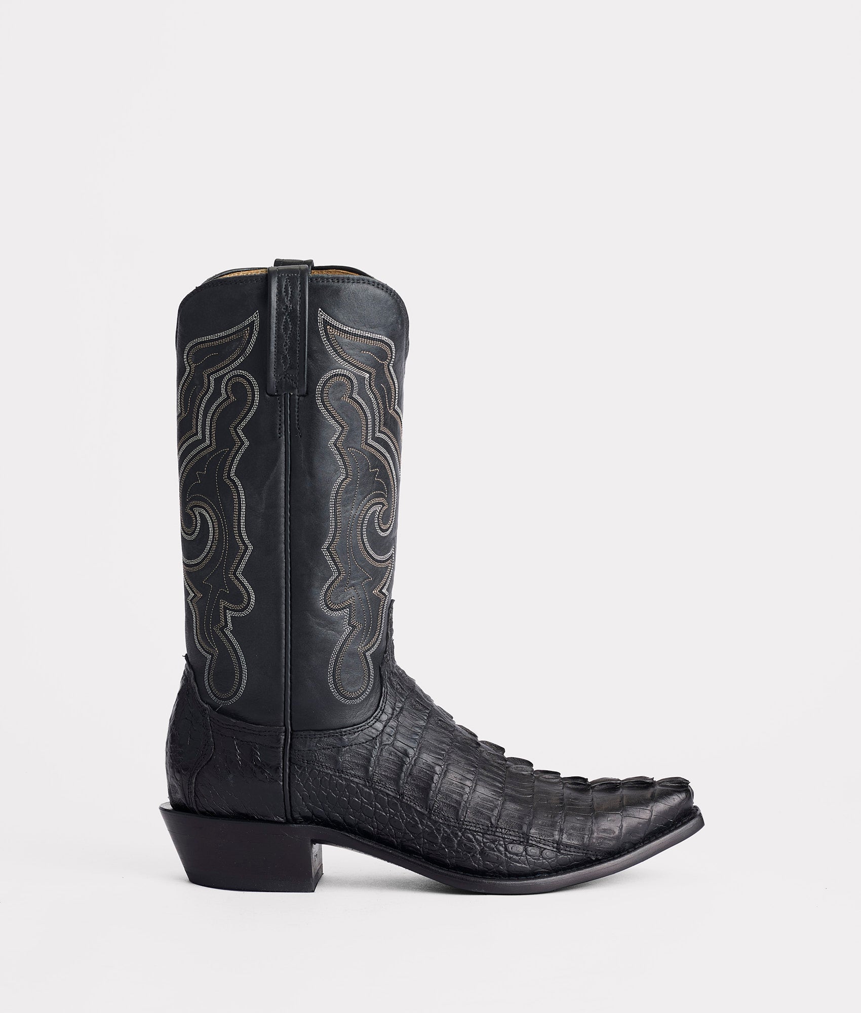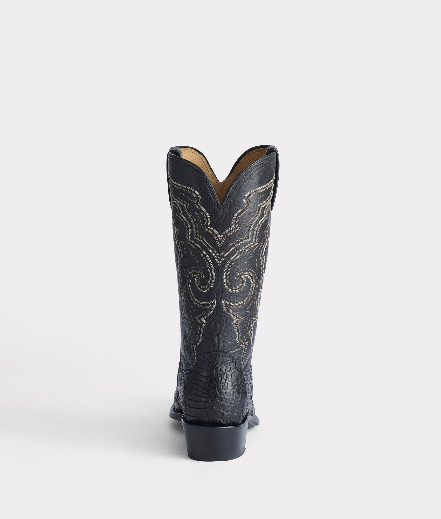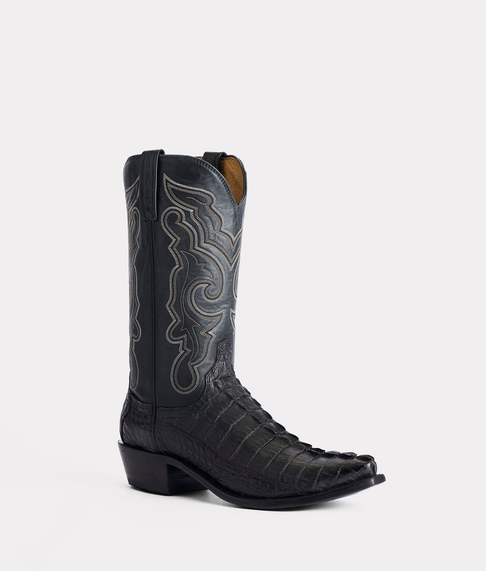 Named after the Texas town within the territory of the Brazos Valley. Franklin reflects the topography of the Lone Star landscape – rough country ridges. tall Texas pines. and seas of wide open pasture land. Textured Hornback Caiman Tail vamps adorned with smooth Ranch Hand leather quarters provide the ultimate illustration of the Texas terrain. Handmade in Texas.