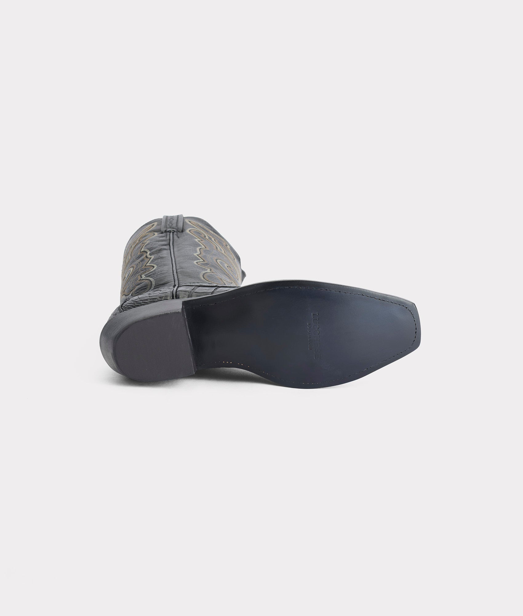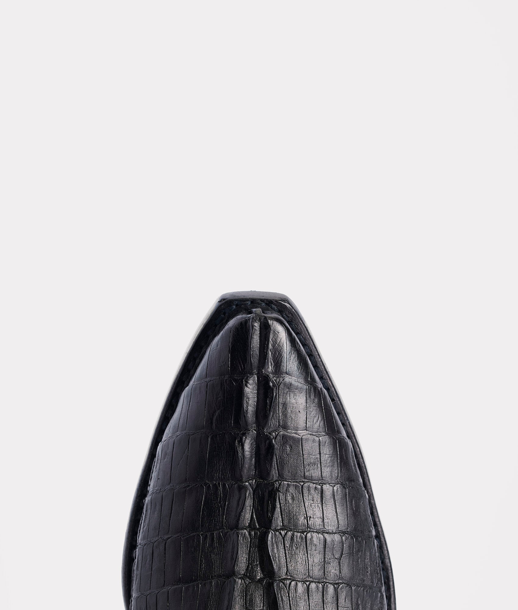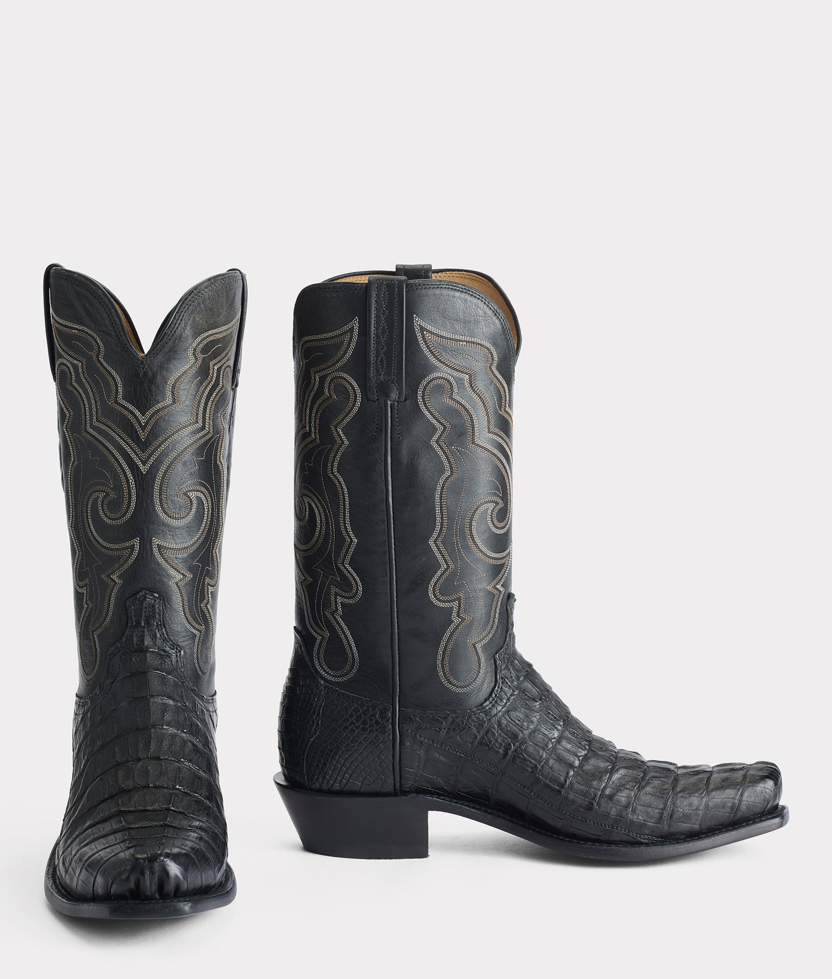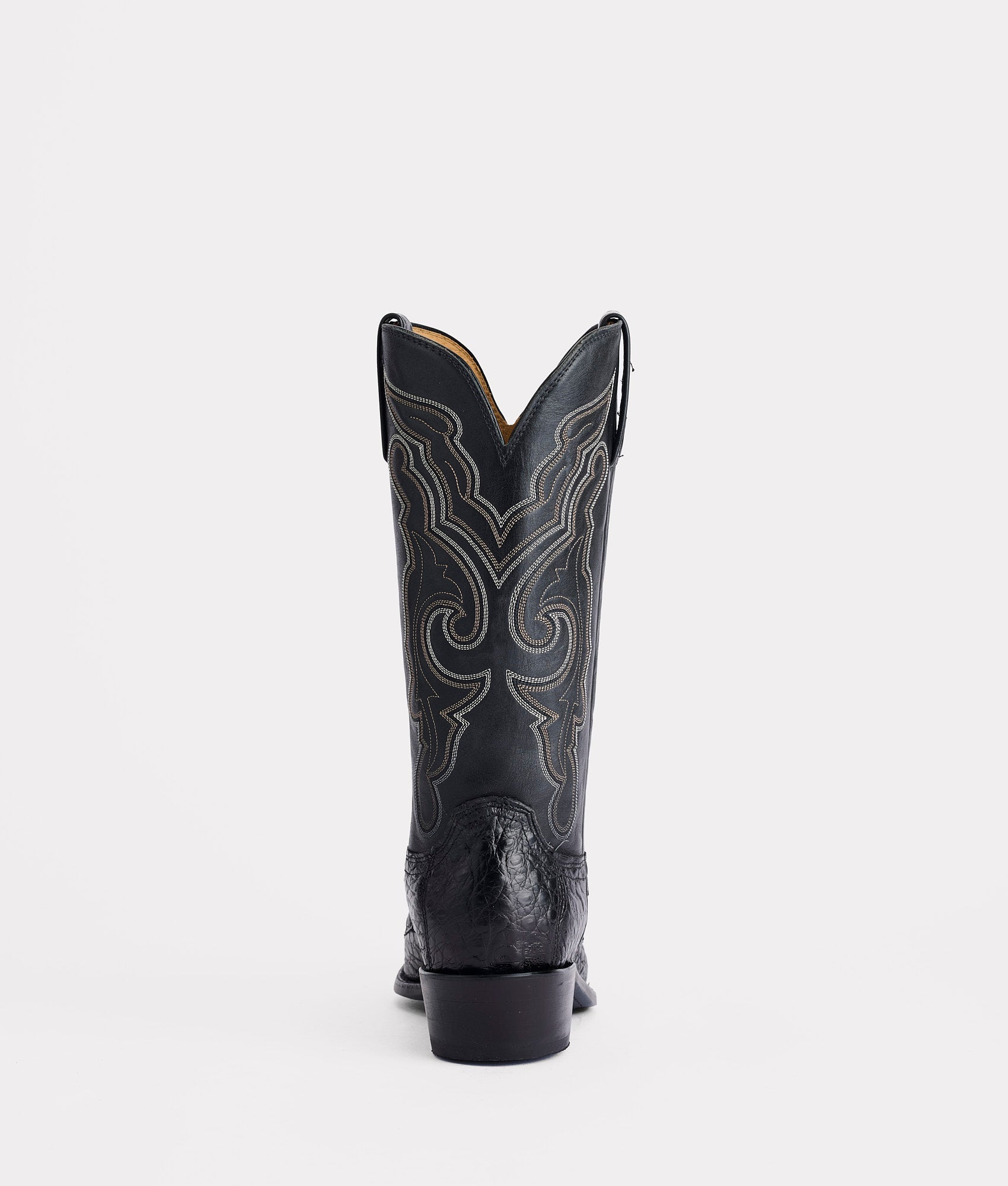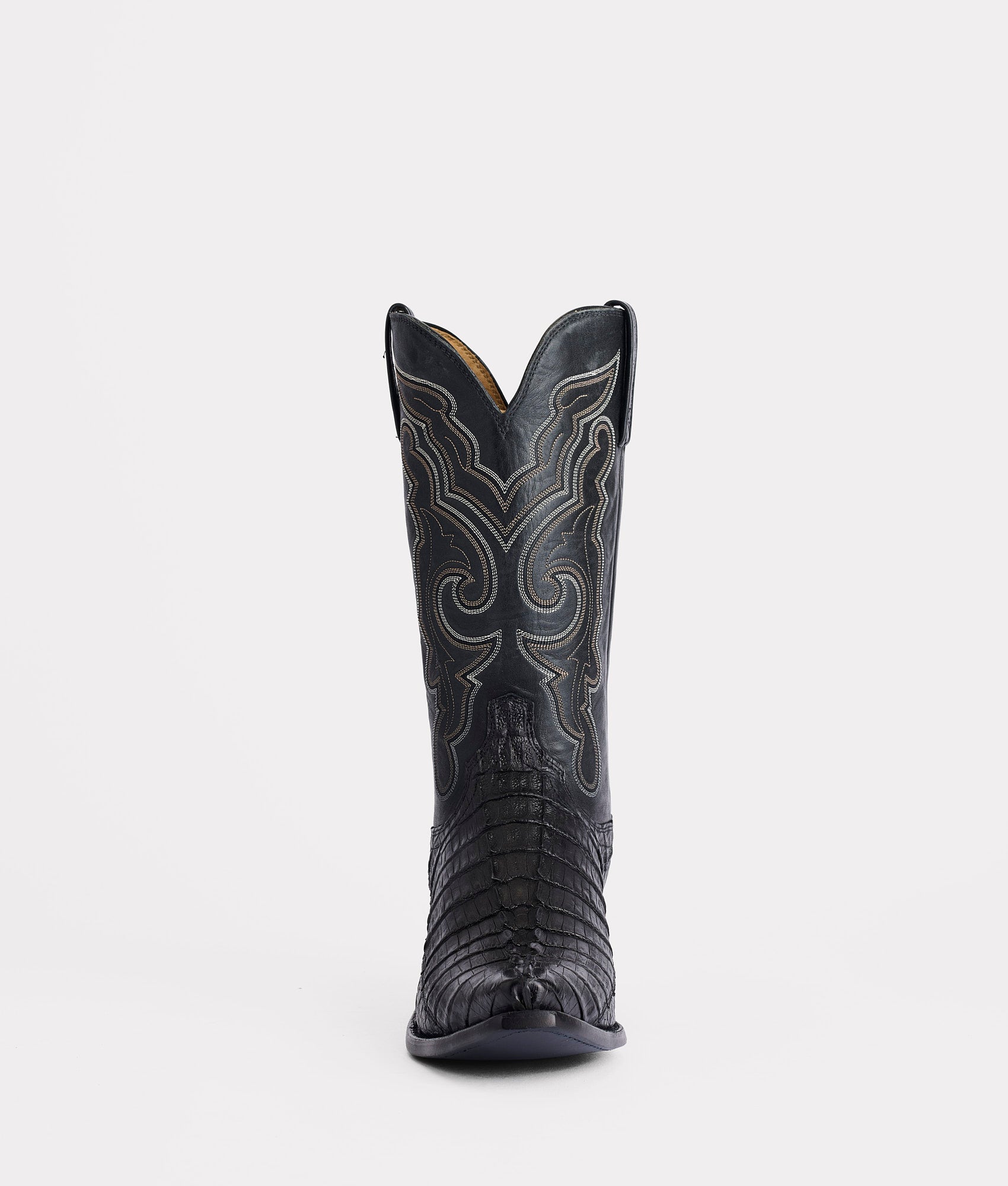 Named after the Texas town within the territory of the Brazos Valley. Franklin reflects the topography of the Lone Star landscape – rough country ridges. tall Texas pines. and seas of wide open pasture land. Textured Hornback Caiman Tail vamps adorned with smooth Ranch Hand leather quarters provide the ultimate illustration of the Texas terrain. Handmade in Texas.