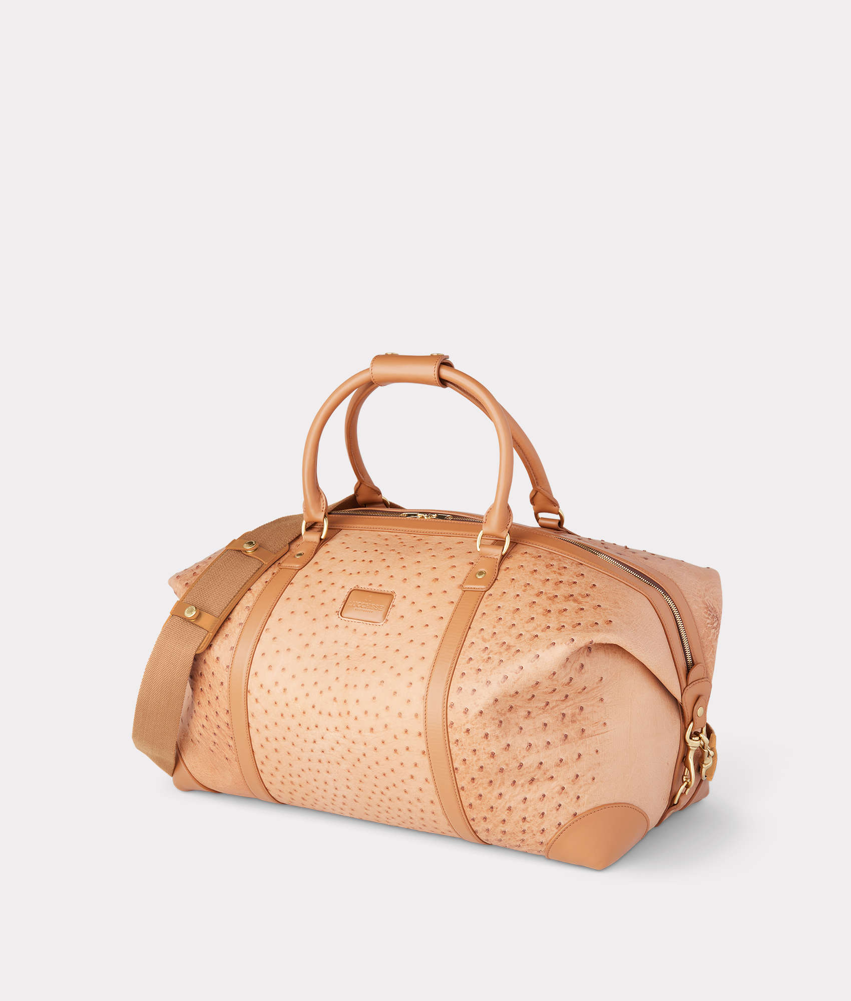 Built with Lucchese’s own Full Quill Ostrich leather. this signature duffle?totes your essentials in first class style. The fold-end construction allows for maximum packing space. which includes natural. water-resistant canvas lining. an interior zipper pocket and two open storage slots.