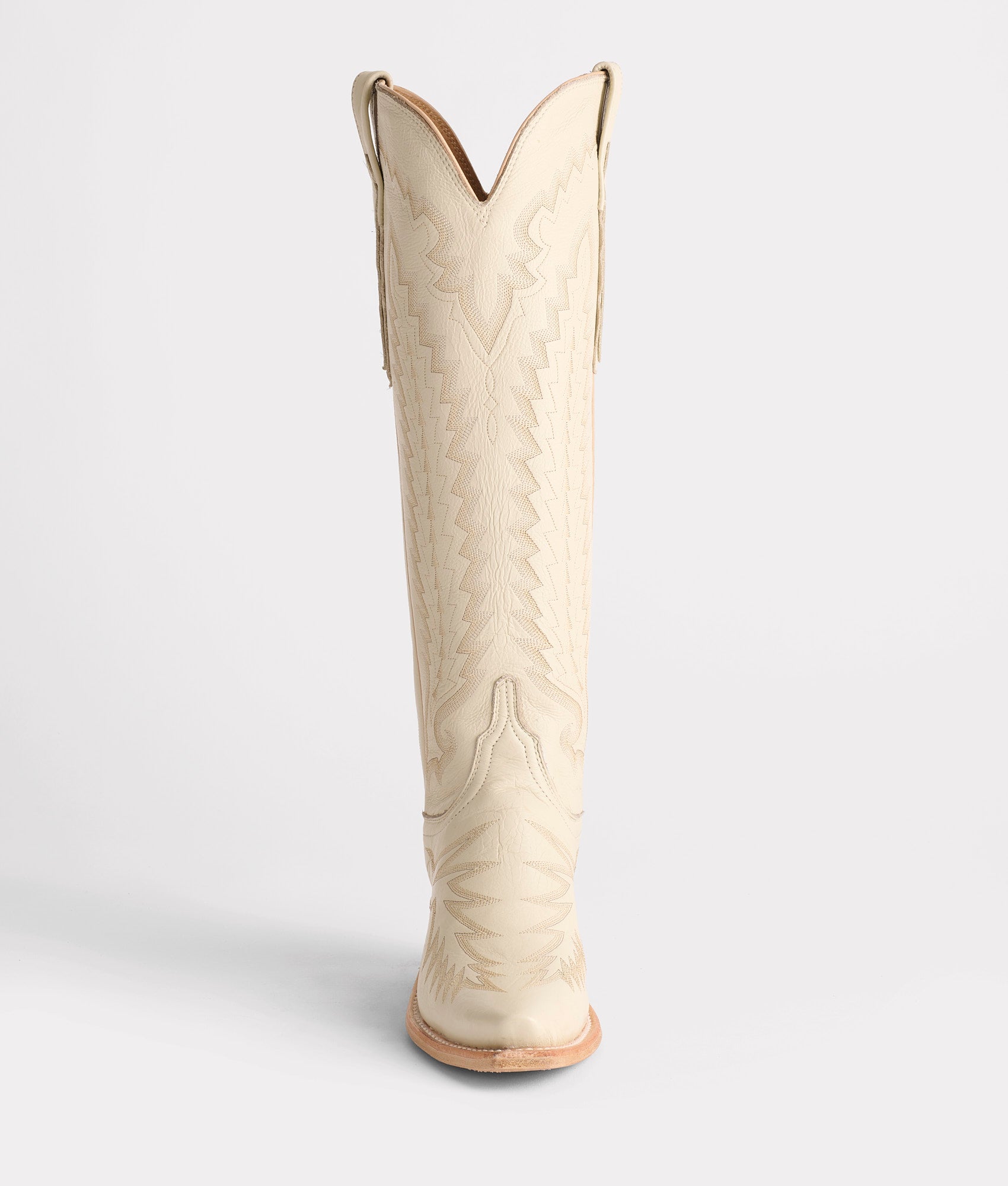 Our No. 1 bestselling boot for women. Priscilla walks an elegant line between timeless classic and cowgirl chic. The vintage-inspired Tioga stitch pattern harks back to yesteryear. but Priscilla is a boot built for today. This knee-skimming. pull-on silhouette handcrafted from supple Bovine leather deserves the spotlight under dresses and over jeans. Handmade in Texas.