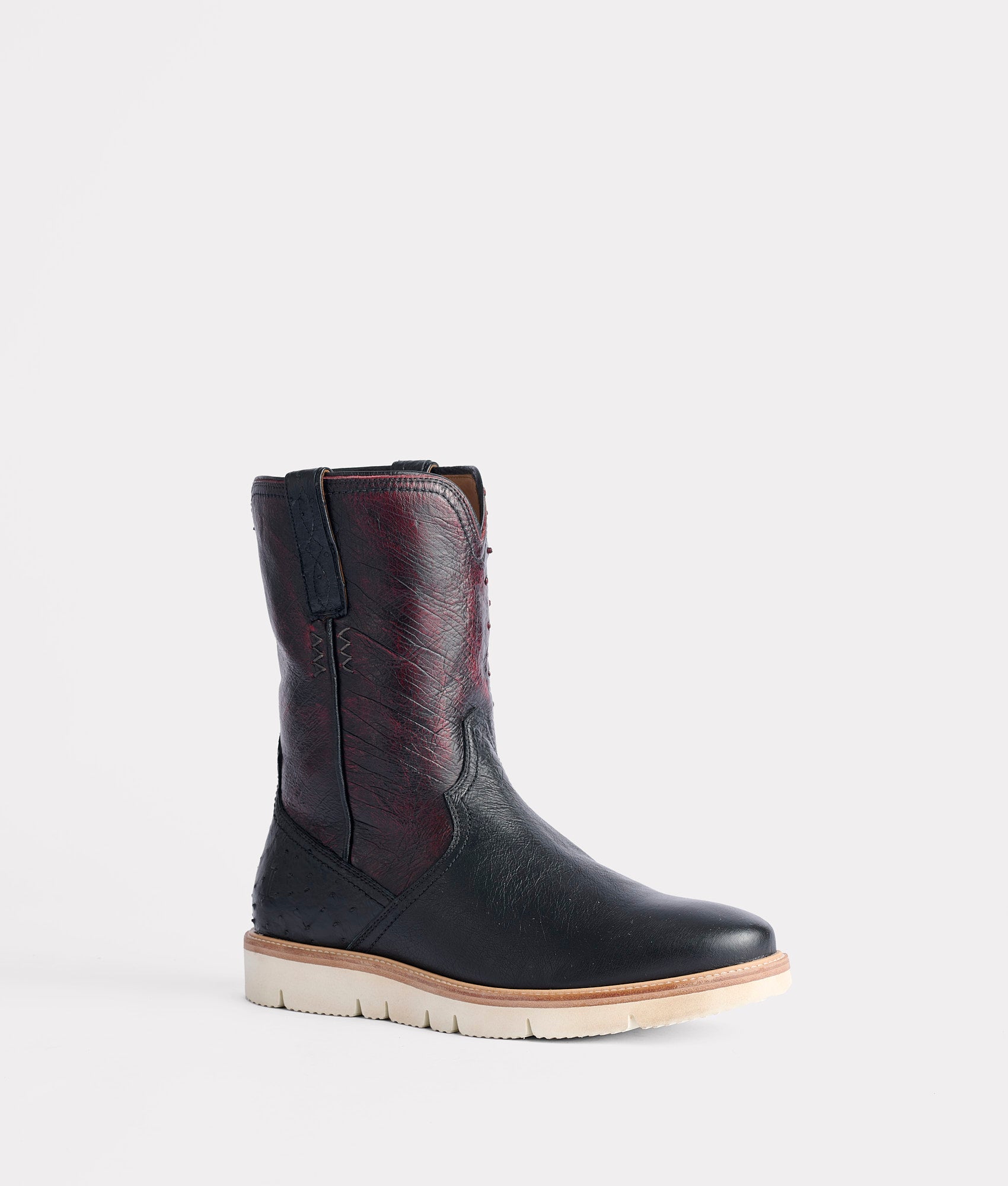 One outsole. Endless versatility. Named after the outdoor-inspired Ridgeline outsole. the collection was designed with the adventurer in mind ??rugged and ready for action. but simultaneously subdued for casual occasions. Since 1883. Lucchese has abided by the unyielding principle. Fashion Follows Function ??Smooth Ostrich all over and grit throughout. Pull on and push forward with this 9 ½-inch-tall silhouette made from the most rugged materials. But rugged doesn’t always mean rough??internally. that is. Whether it’s muddy trails or slippery sidewalks. our team prioritizes comfort by utilizing the softest. most durable components ??curated to a lifestyle that bridges the gap of mild and wild. The wedge Ridgeline outsole offers maximum anti-slip grip from the aggressive tread pattern. Get and go where boots have never tread before. Impromptu expeditions and planned excursions are why our team developed this collection. Summit your Ridgeline!