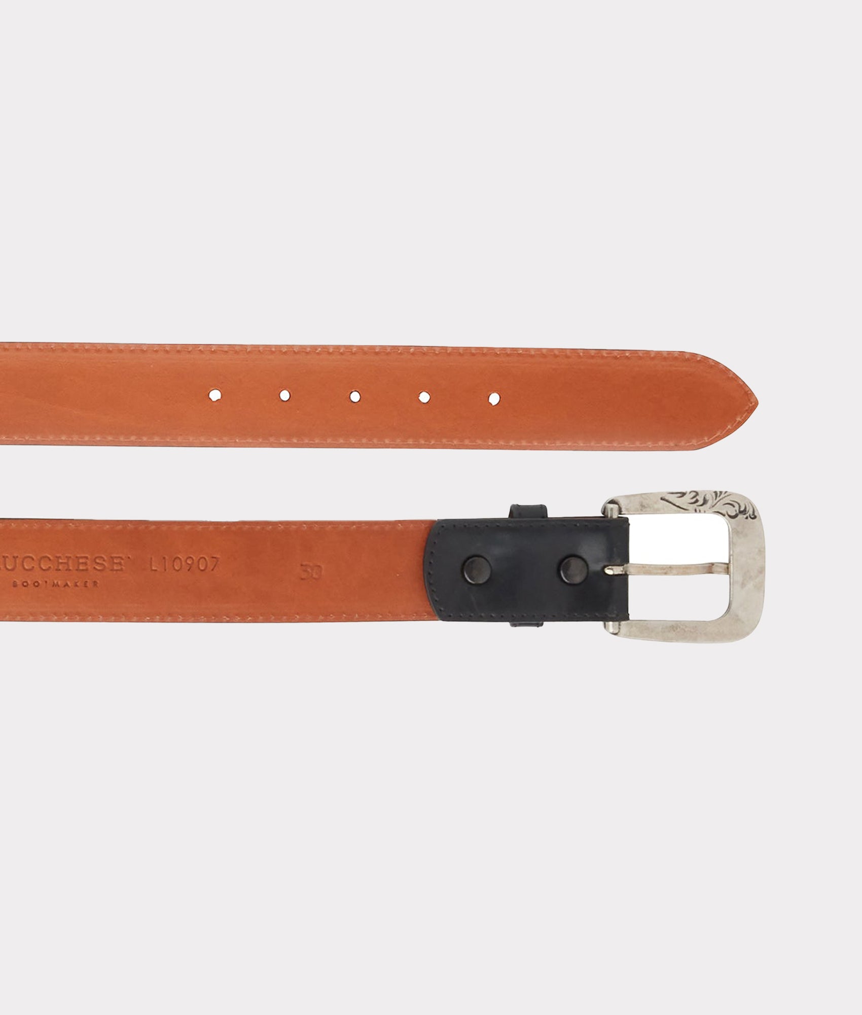Lucchese belt for men made with smooth goat leather. The belt’s silver plated buckle has intricate details that pay homage to the West and add character to the belt. Handmade in Texas. 1.5 wide Removable buckle *Color may vary slightly due to hand finishing techniques.