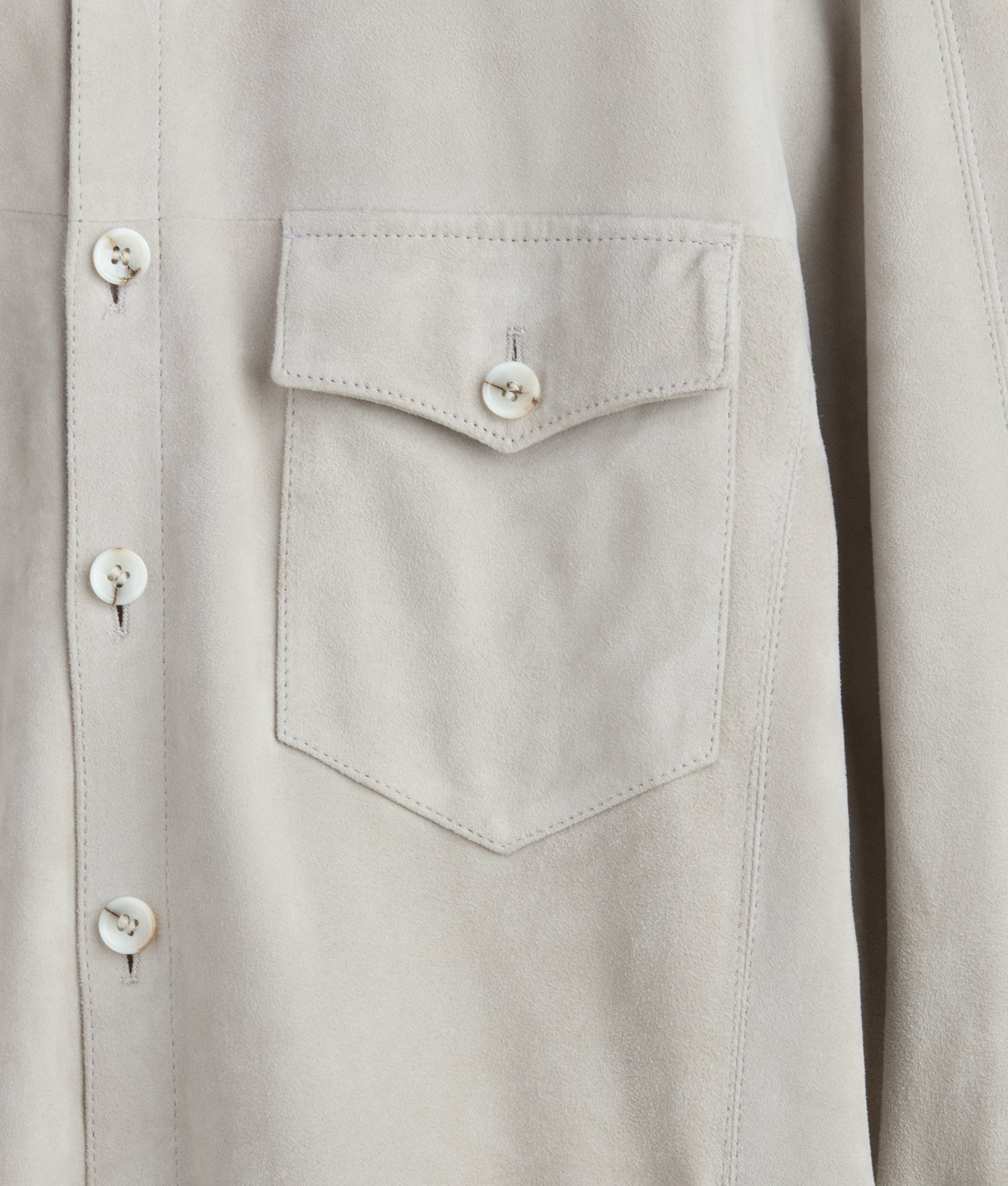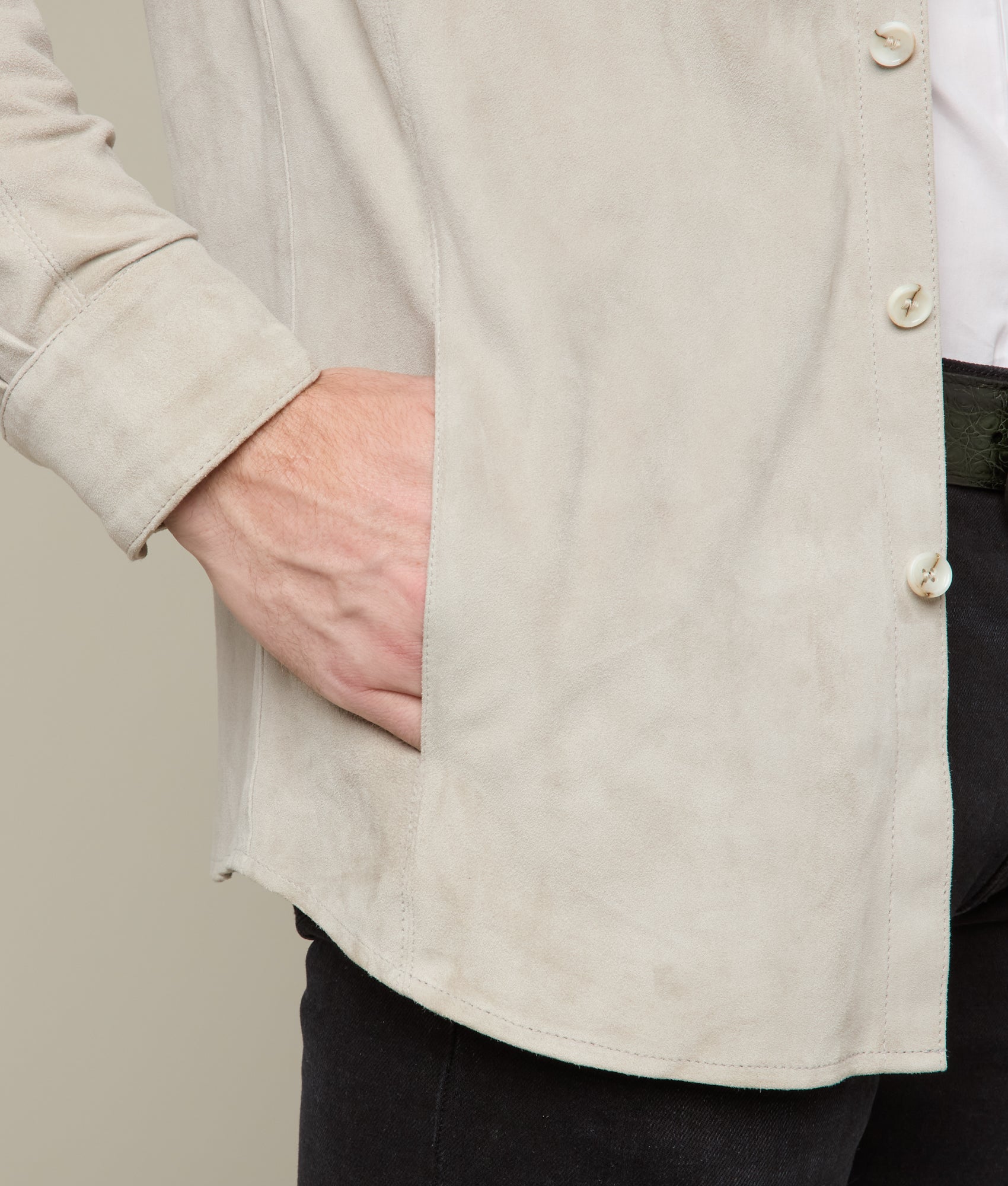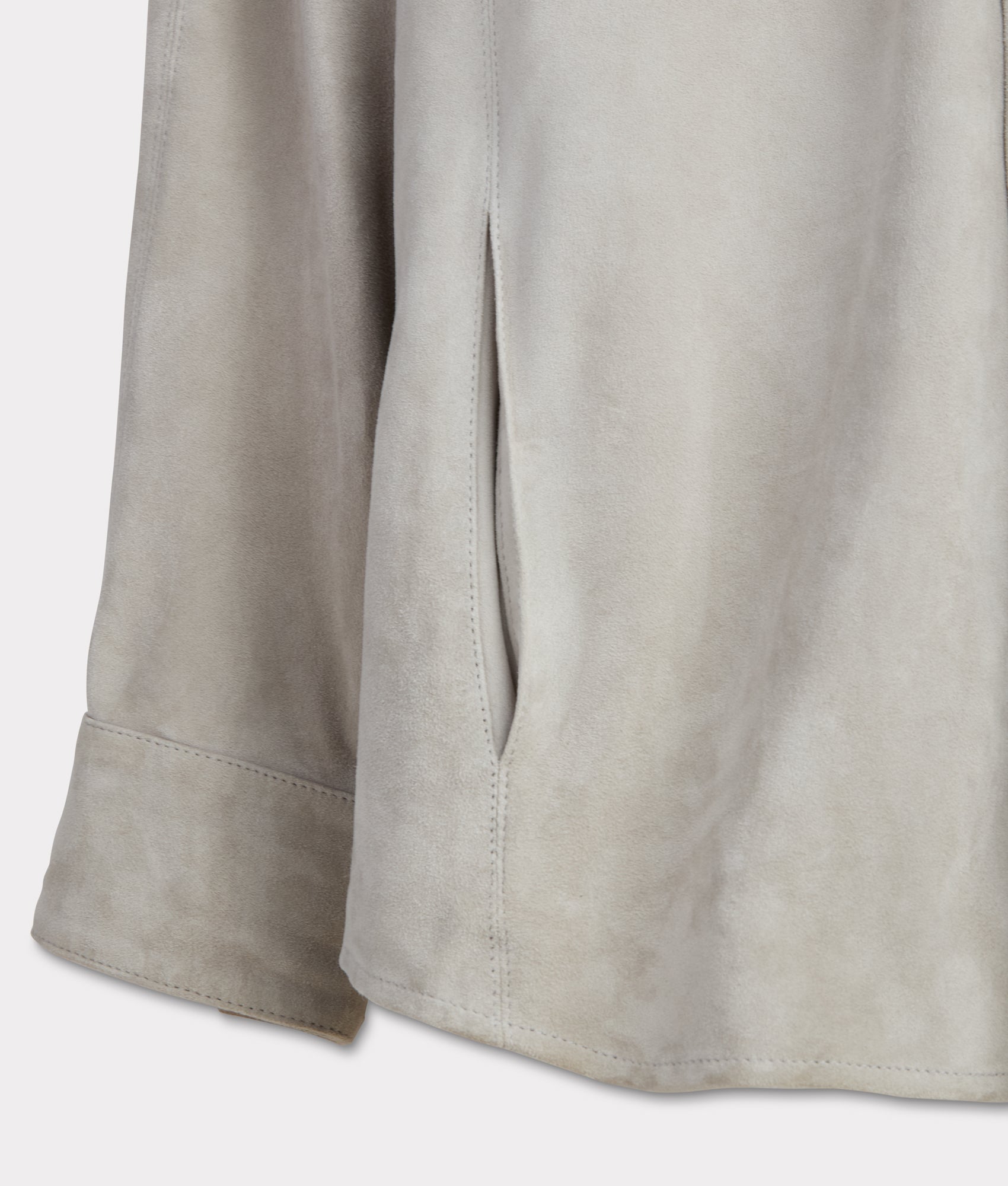 Crafted from luxurious 100% Vera Pelle leather. this Suede Overshirt embodies the finest Italian craftsmanship. Its sleek and refined design features dual chest pockets and functional side pockets. providing both style and utility. The button closure adds a refined touch. while the soft. tactile suede leather offers an elevated feel of sophistication. Ideal for layering or as a standalone piece. this versatile garment is designed to elevate any wardrobe. Made in Italy.