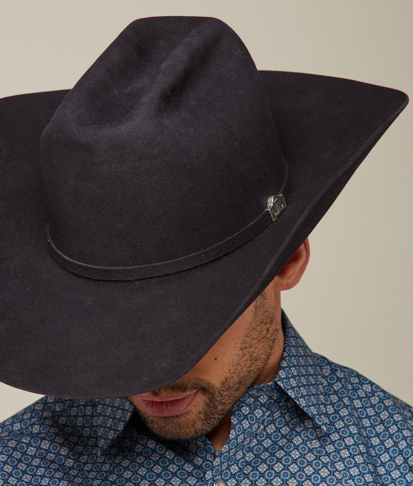 Part of our exclusive Lucchese Western hat collection. the Republic is a hat that represents the beauty and history of Texas. The Republic is 100% custom made and hand-shaped from 100% beaver fur enabling this Western hat to resist more oils. sweat. and stains. A 4 1/2 tapered crown with a slightly modified cattleman’s crease and a 4 1/4 brim achieve the ultimate look of Western sophistication. A self-band made from its own body are attached with a handmade hat pin styled in the shape of the Alamo with the Lucchese mirrored-L 1883 logo inside the outline. Each hat has been individually sanded for a fine velvet finish. Handmade in Texas.