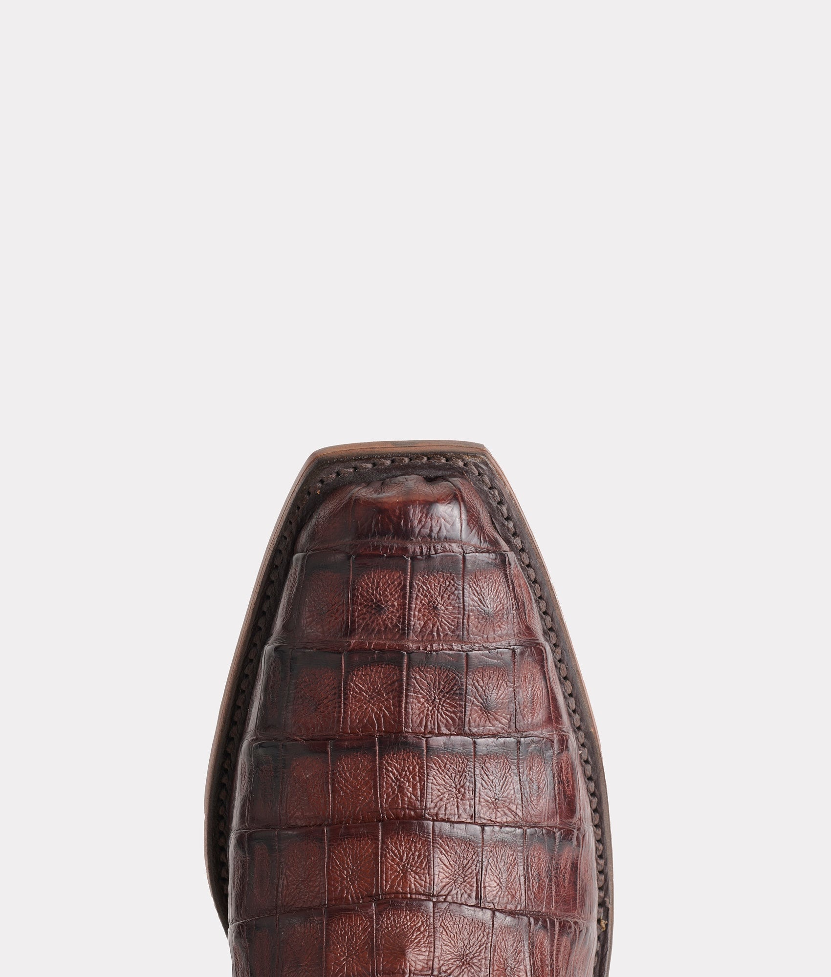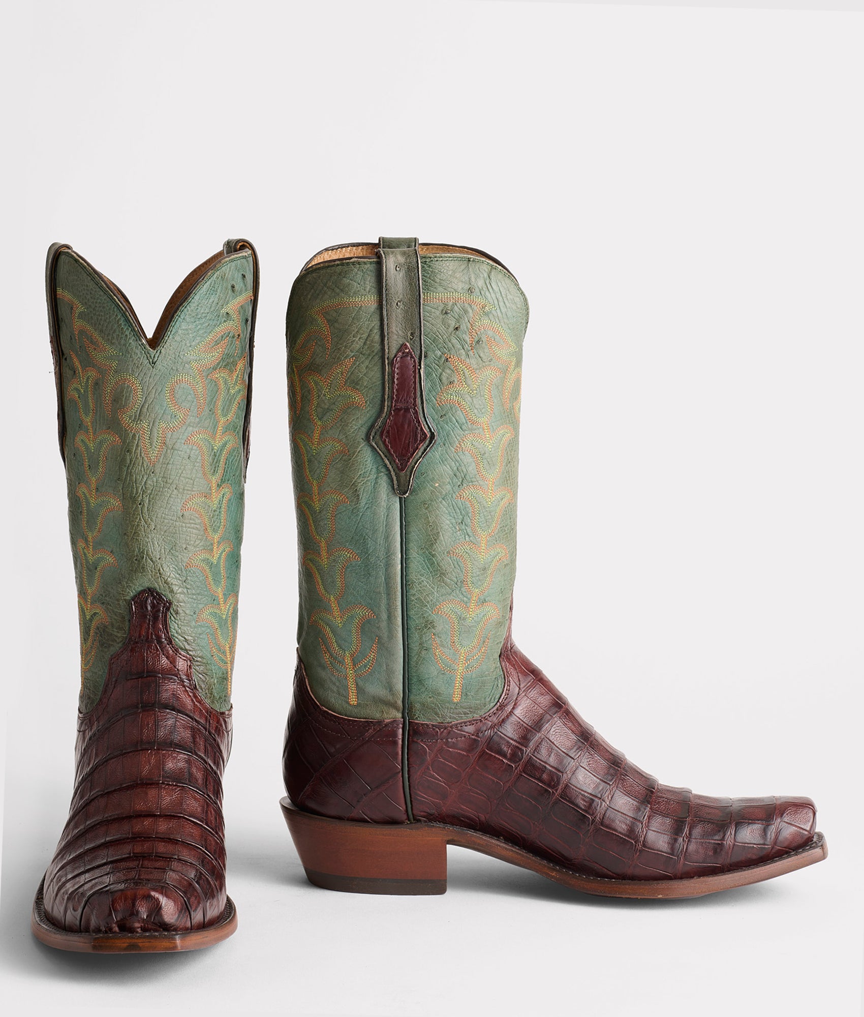 The man wearing?Tulipano?carries himself with quiet confidence. a presence that speaks before he ever says a word. He’s a man of contrasts ?C rugged yet refined. bold yet composed. Every detail of his style is intentional. and a reflection of his character. Hand-stained?Caiman in natural?brown?toneson?the?vamp?and?a?pop?of?color?on?the?Smooth?Ostrich quarters.?Why dirty a vase when you can freshen up a suit? Plus. leather smells better than tulips anyway! Handmade in Texas.