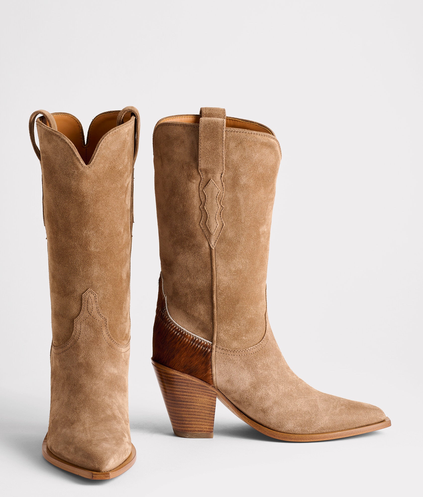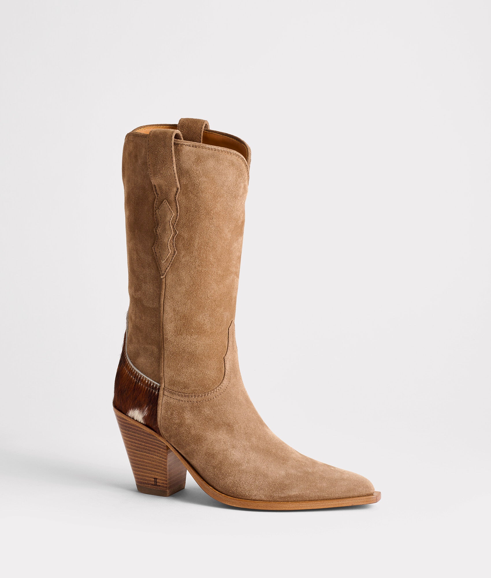 Named for the Italian word meaning ‘life.’ the Vita embodies the ongoing conversation between European artisanship and Western tradition. A companion to the taller Vittoria. Vita distills the silhouette into something more refined and deeply nuanced. Rendered in black python with oiled Italian calfskin. and velvety suede with hair-on-hide. Vita is a study in mixed media. where every material carries its own voice. With a 90 millimeter fashion heel and minimalist detailing. she reinterprets Western iconography through the lens of Italian elegance. Handmade in Italy.