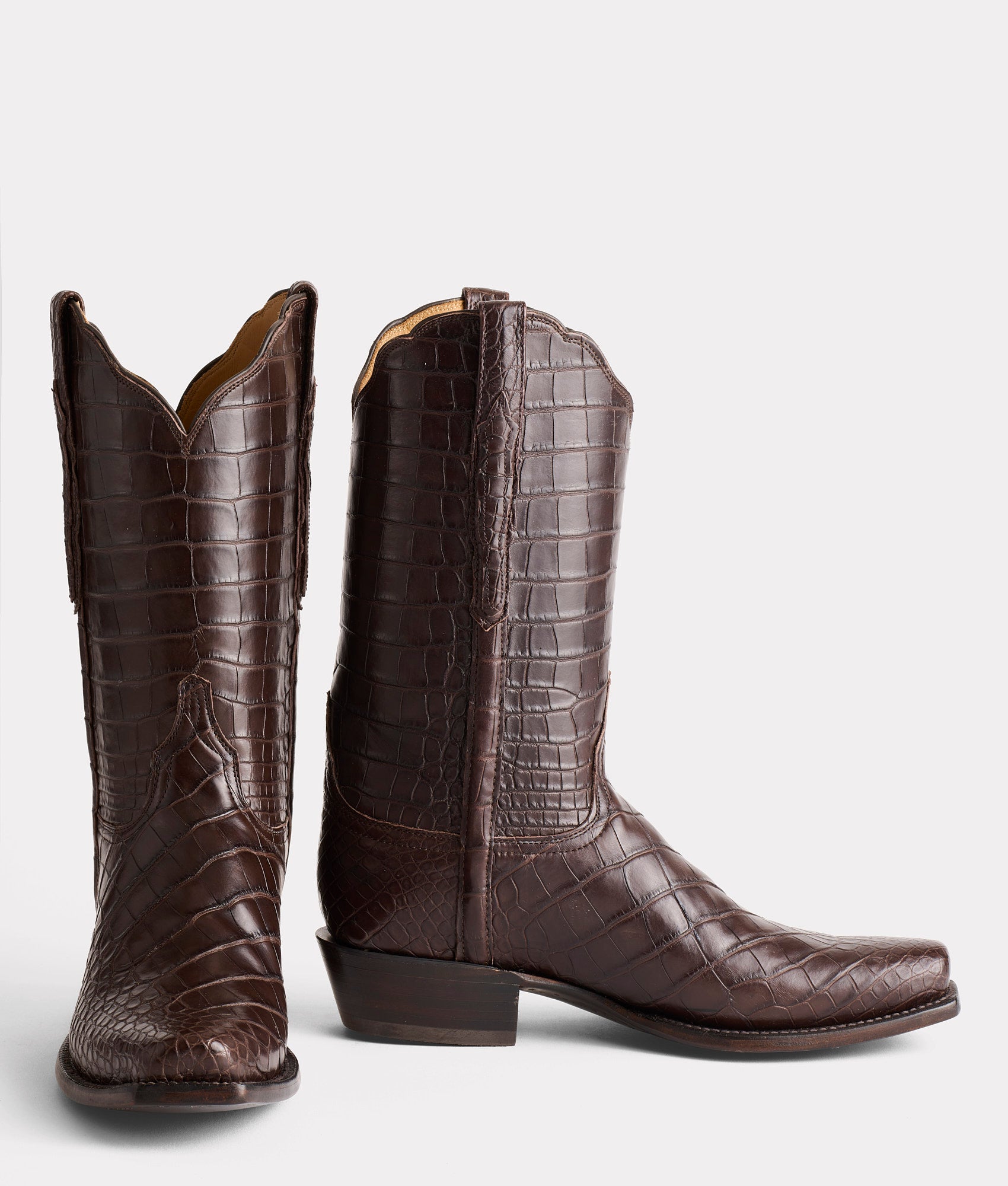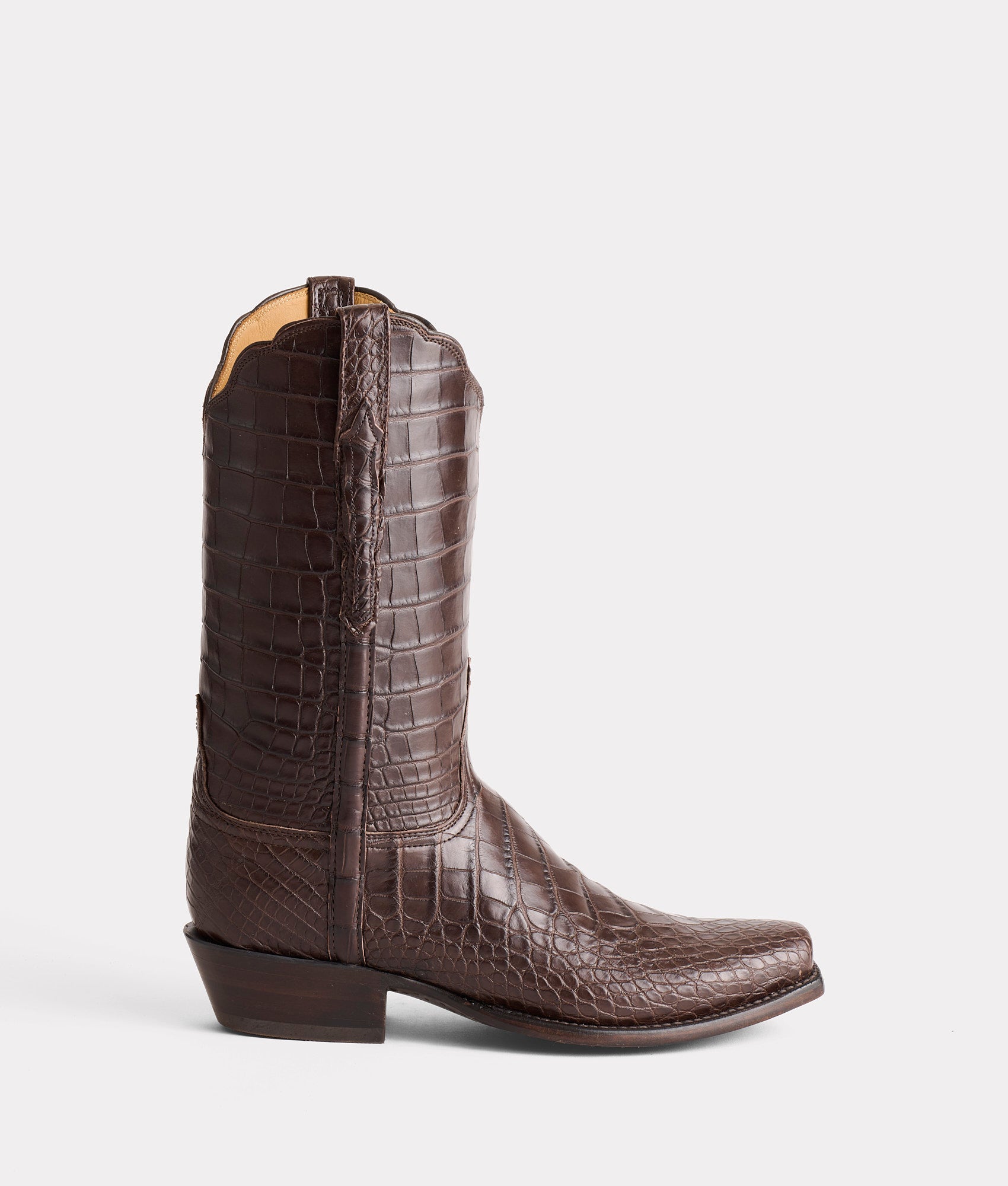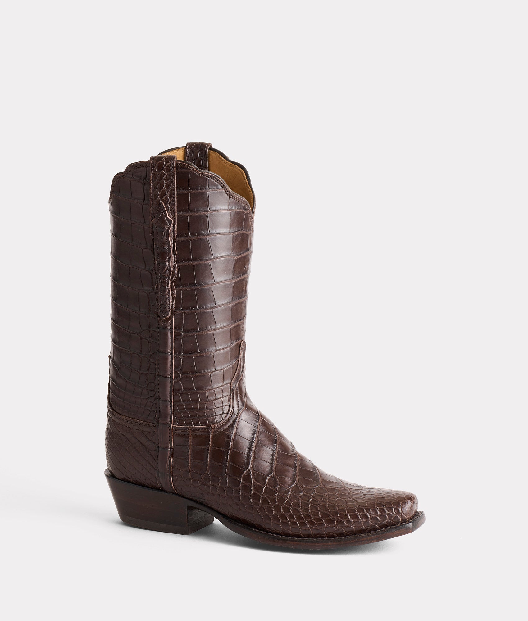 Lucchese Bootmaker’s Baron stands as a paragon of luxury footwear. meticulously handcrafted from the finest American alligator leather. This premium material undergoes a rigorous tanning process. encompassing nearly 100 individual steps. ensuring both its exceptional quality and durability. Tanned entirely in the USA. each piece of leather is center cut. chosen for its unparalleled quality and texture. These full top and bottom alligator boots are painstakingly assembled by Lucchese’s most skilled artisans. transforming them into more than just footwear. but a form of wearable art.? Designed for the most discerning clients. the Baron Boot is an heirloom-quality masterpiece. embodying the pinnacle of American craftsmanship and elegance.