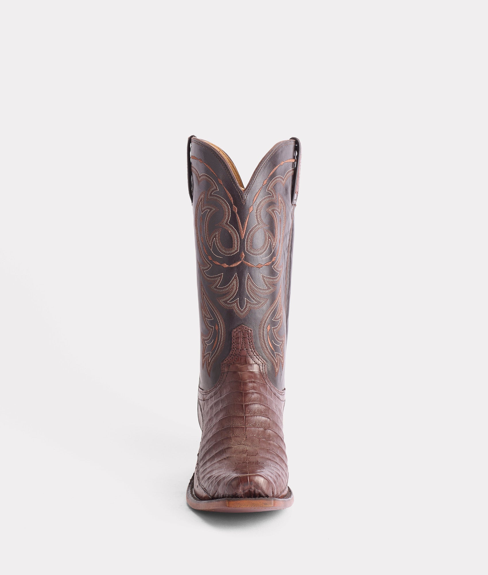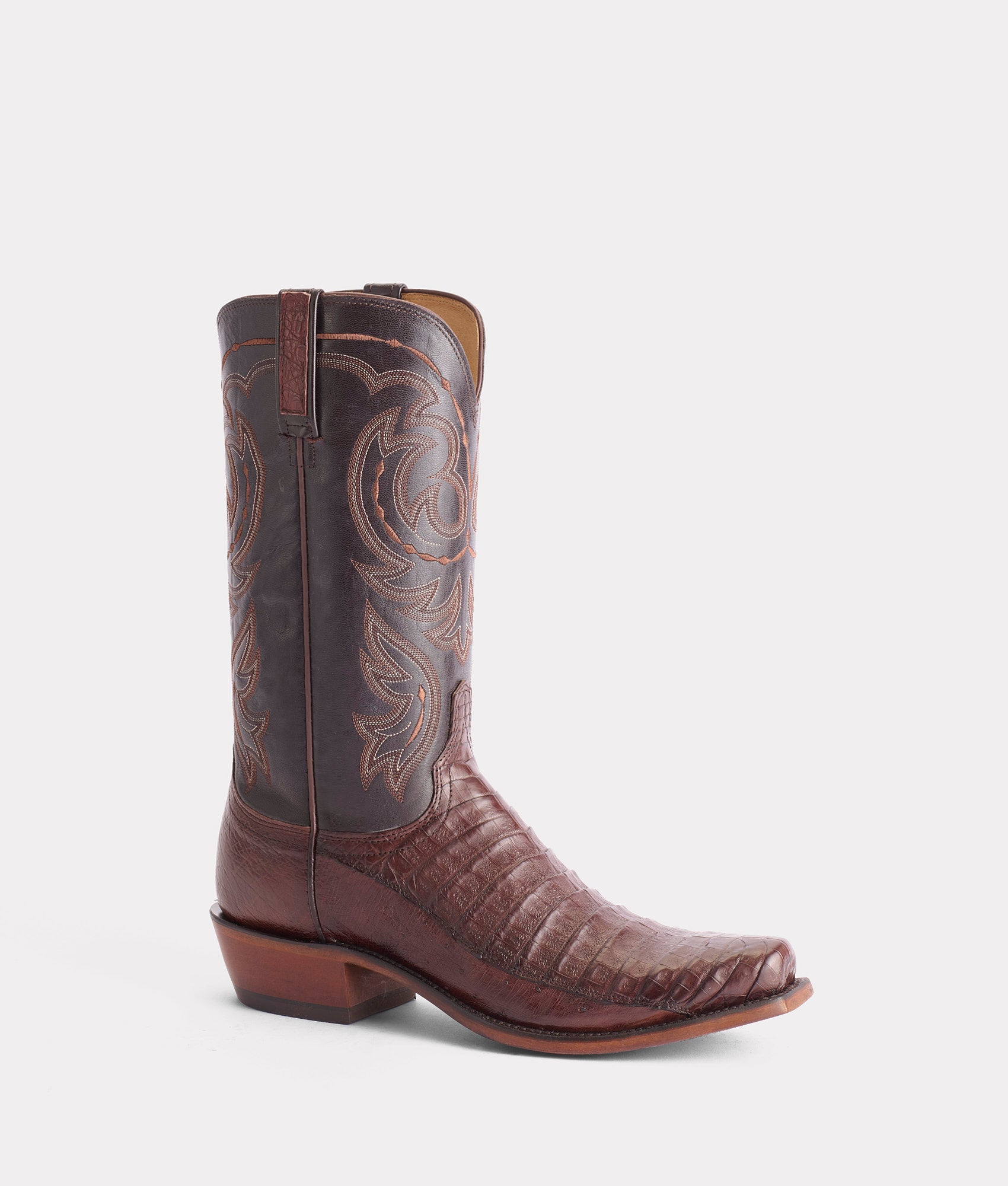 Douglas is an exotic Western silhouette crafted from Caiman and Smooth ostrich leather – a winged-vamp construction is another component of perfected artisanship by Lucchese. The ultrasoft Smooth ostrich leather leather balances out the toughness of the Caiman. bridging the gap of Western sophistication and comfort. Handmade in Texas.