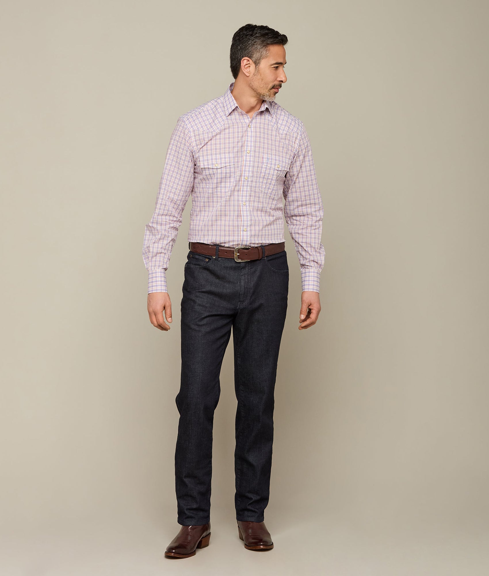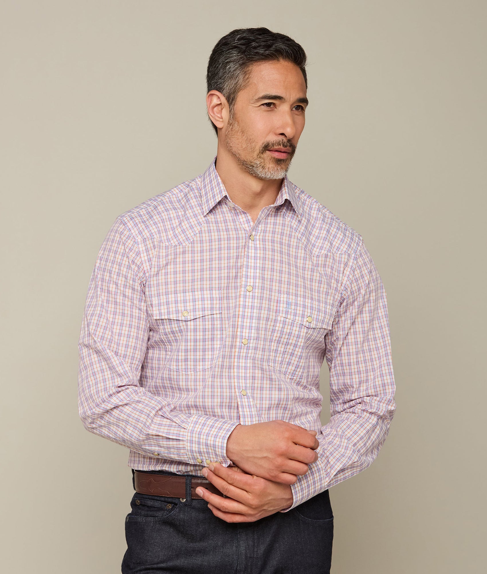 Named for our El Paso factory. this rugged. cotton western shirt features a cowboy yoke in front and back with a subtle. embroidered mirrored-L emblem on the left pocket and lower placket. Classic cowboy fit.