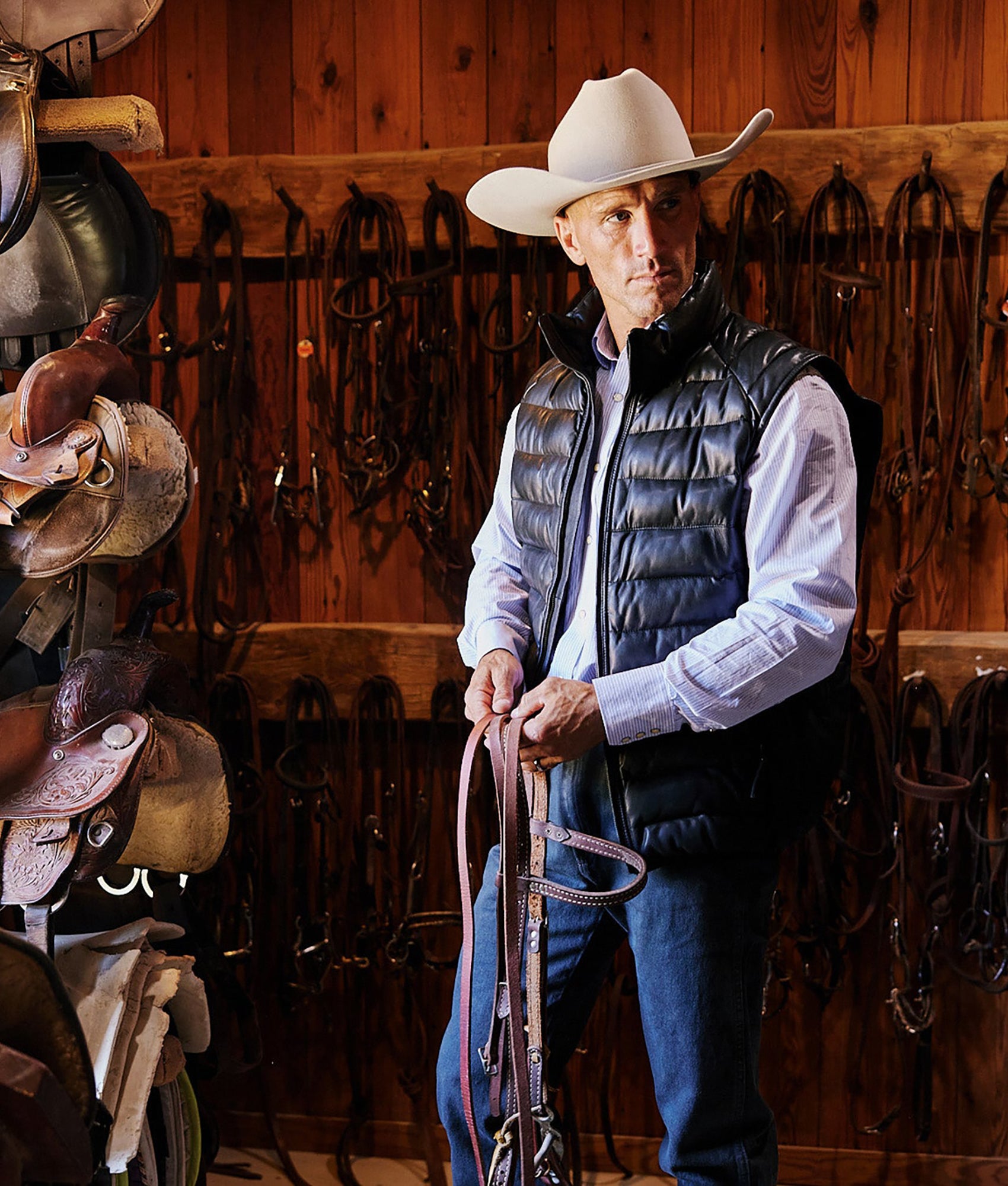 Keep warm all season long. For everyday wear and cold-weather warmth. our ribbed leather puffer vest is crafted from the finest materials. With a classic design and quality crafted for insulation. the Lucchese men’s puffer vest will last generations. Note: Fits small – recommend ordering a size up – Clean professionally