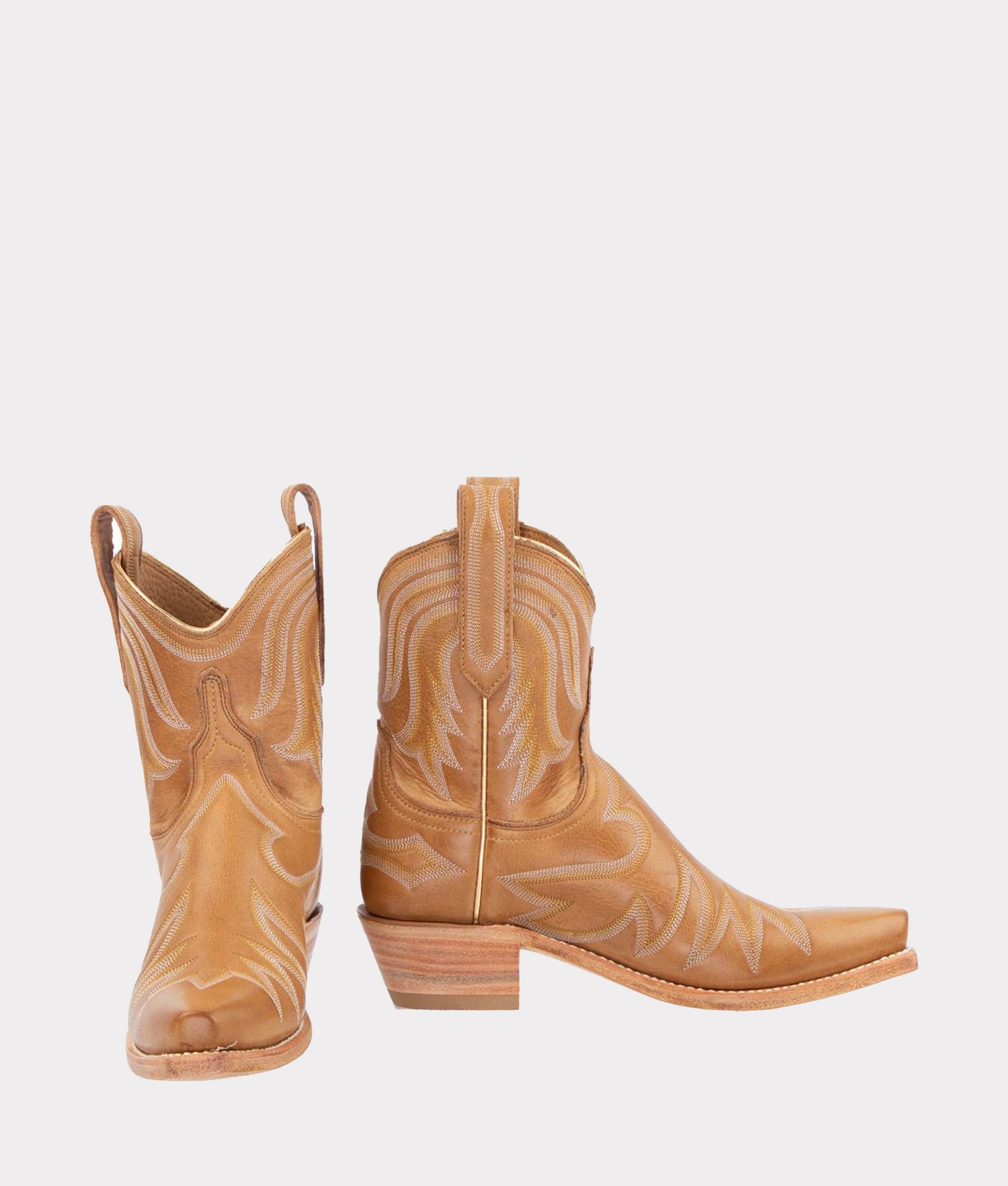 Pris is a vintage-inspired Western bootie that’s sure to steal the show. The dynamic Mery stitch pattern contrasts with smooth Ranch Hand leather for a boot with tons of energy and visual texture. Pris is a fashion favorite. Handmade in Texas.