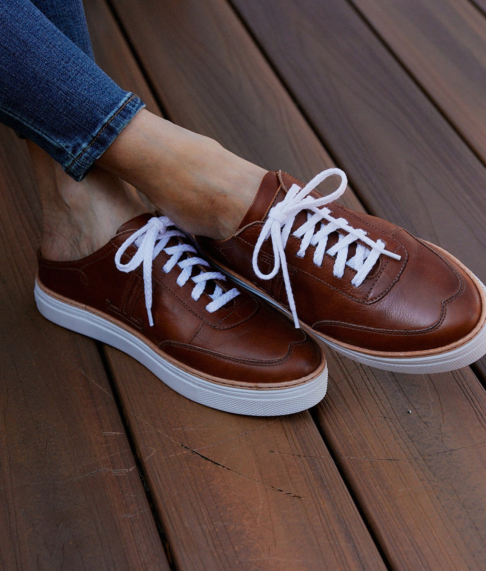 The Saddle Mule is a modified take to our bestselling sneaker. Thoughtfully crafted by our coveted artisans from Cowhide leather. the Saddle Mule is a sporty. fresh and lightweight alternative to a traditional mule or sneaker.