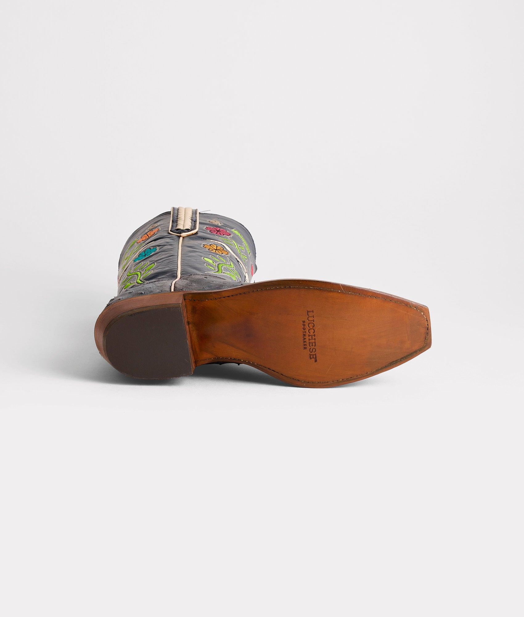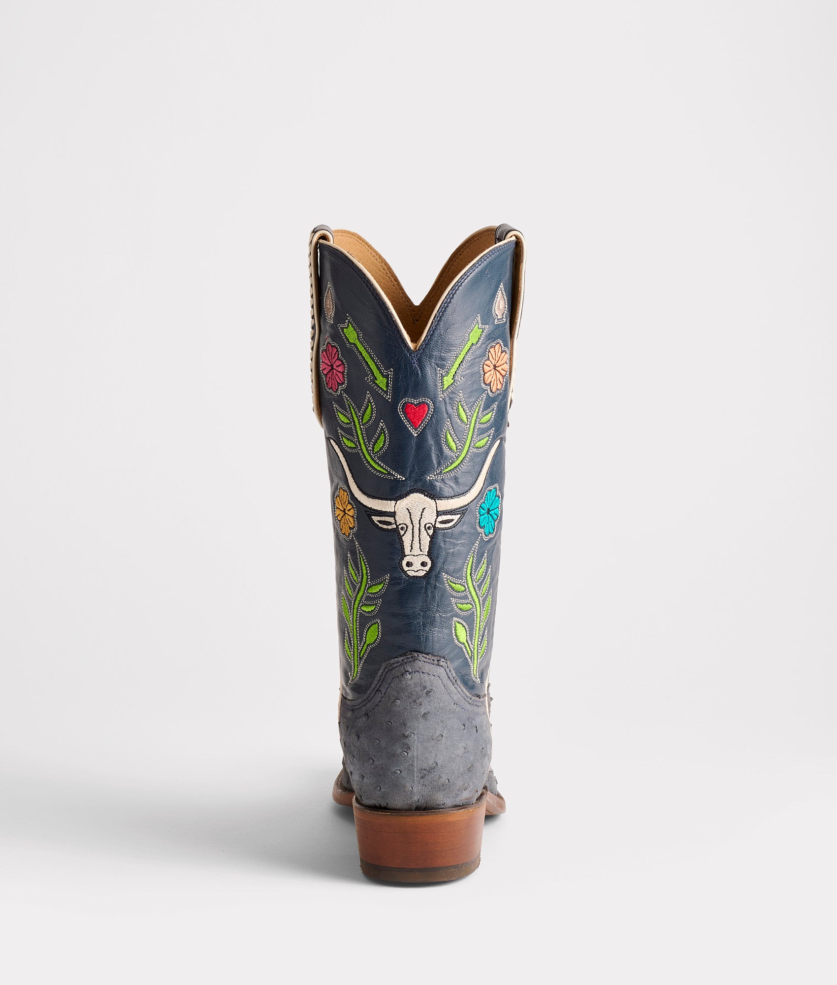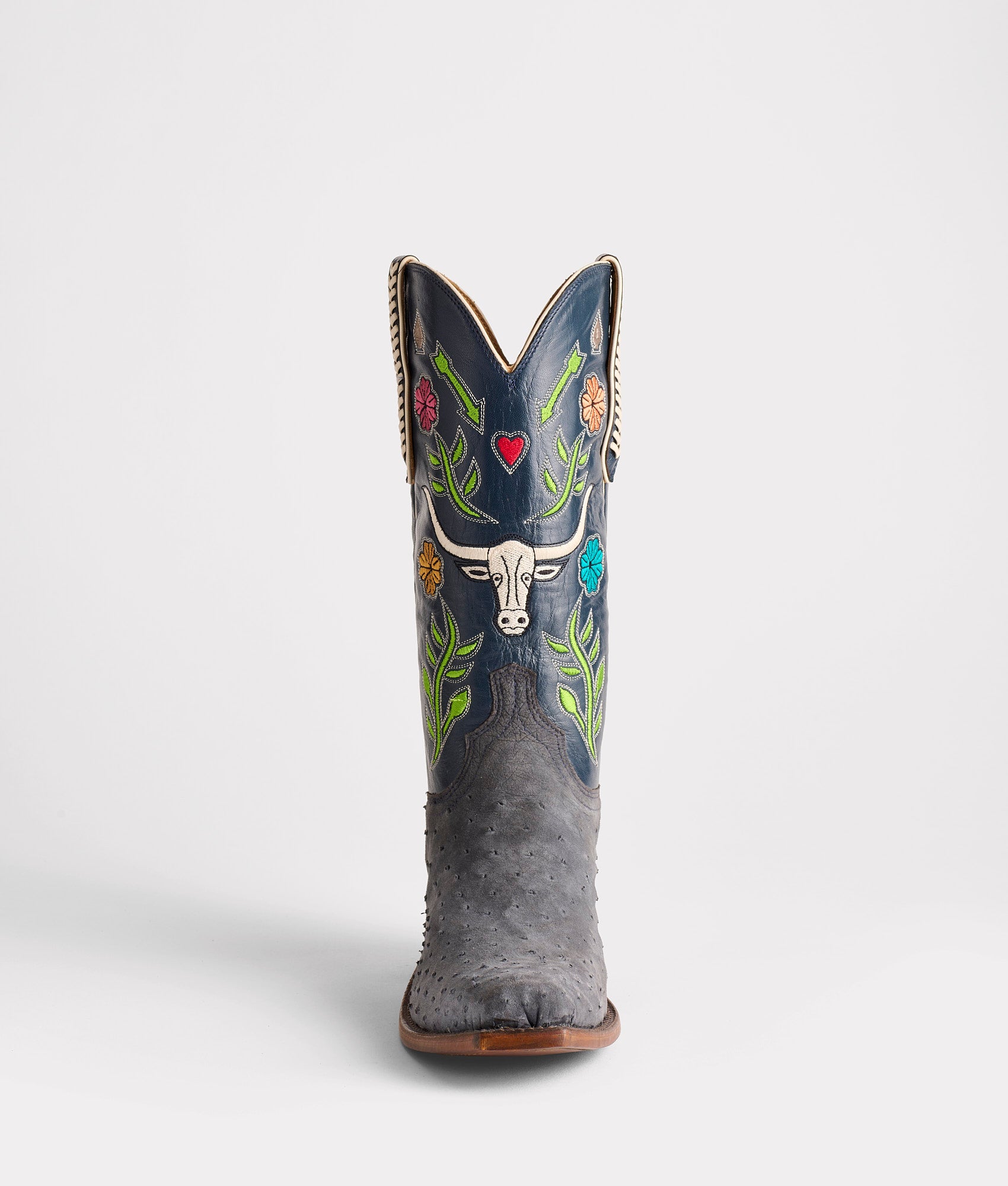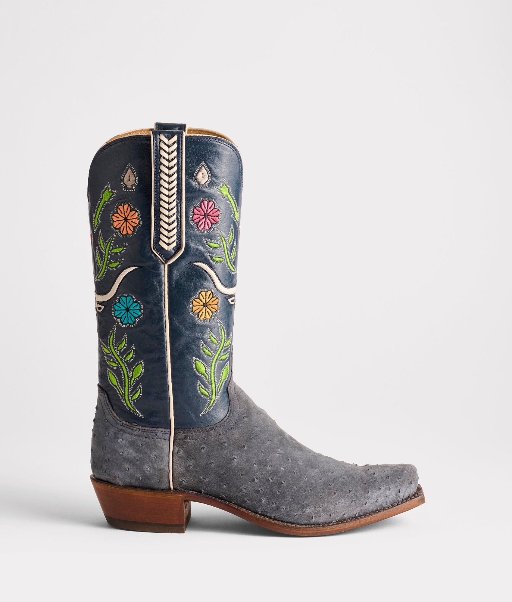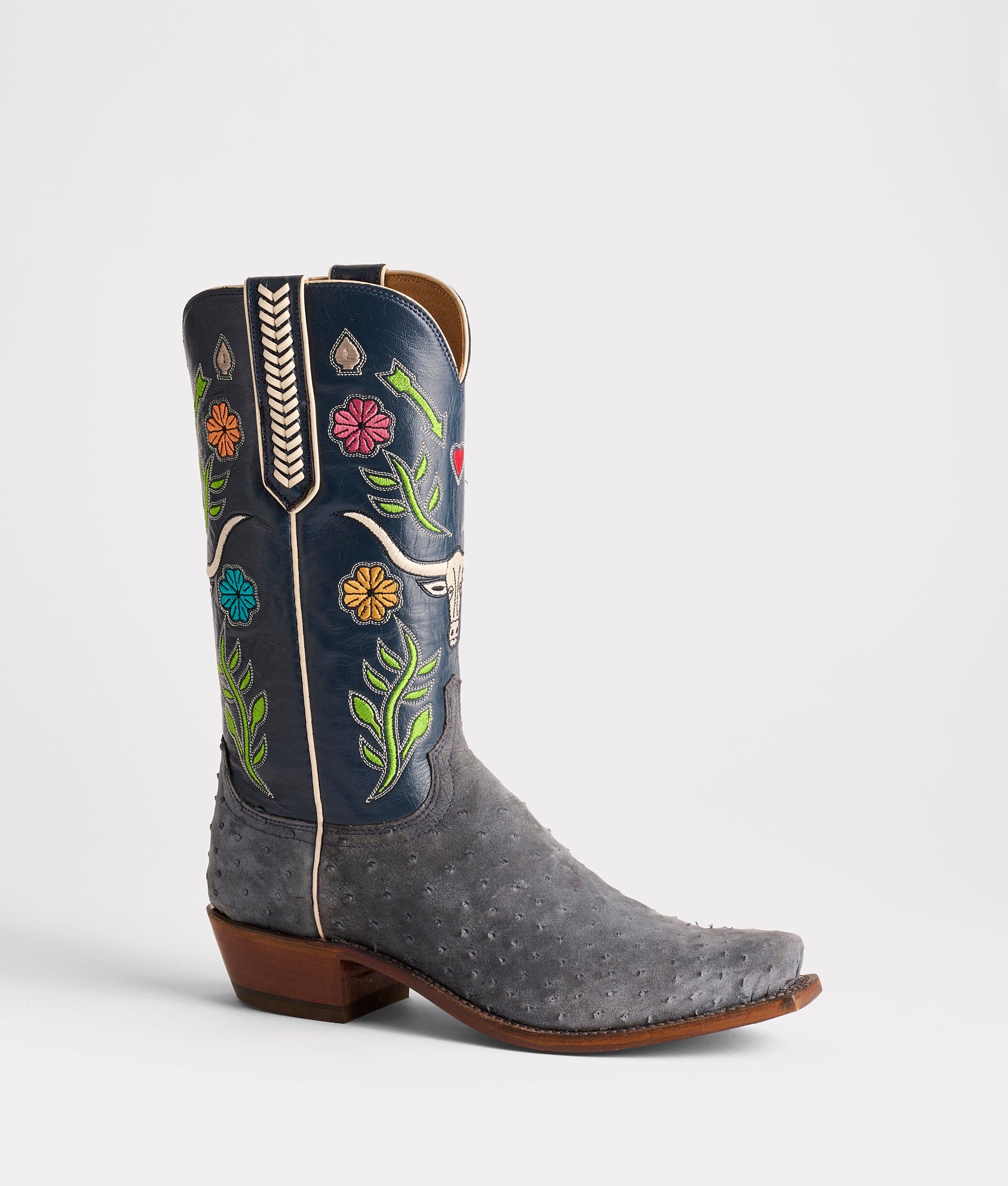Straight Shooter doesn’t waste words. and neither does its design. The muralled western silhouette speaks through fully-stitched motifs that stretch across the quarters. instilling nostalgia. The Cabrera stitch on the upper and the Gallardo band along the scallop nod to the vintage Texan—wildflowers. wild cattle. and wild cards. Over the last three years. our Product Development Team has perfected a NEW Lucchese leather. Sueded Full Quill Ostrich—velvety like Suede with the distinctive crowns of Ostrich. Every detail of this Straight Shooter gets to the point. from the aesthetic of Ostrich quills to the knife and needle that brought it to life. Straight Shooter is made for the man who knows what he wants. how he wants it. and how he shows up to get it. Handmade in Texas.