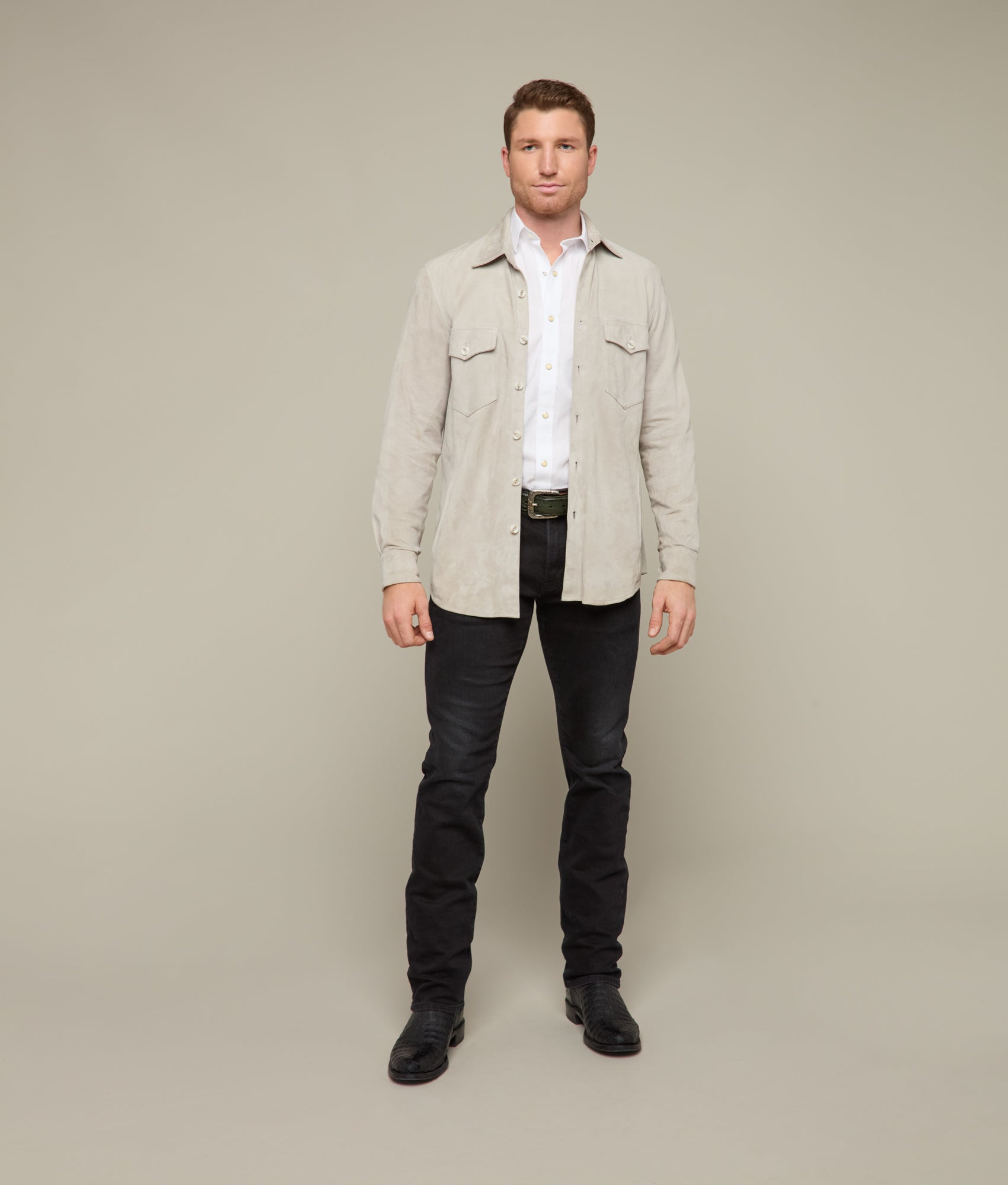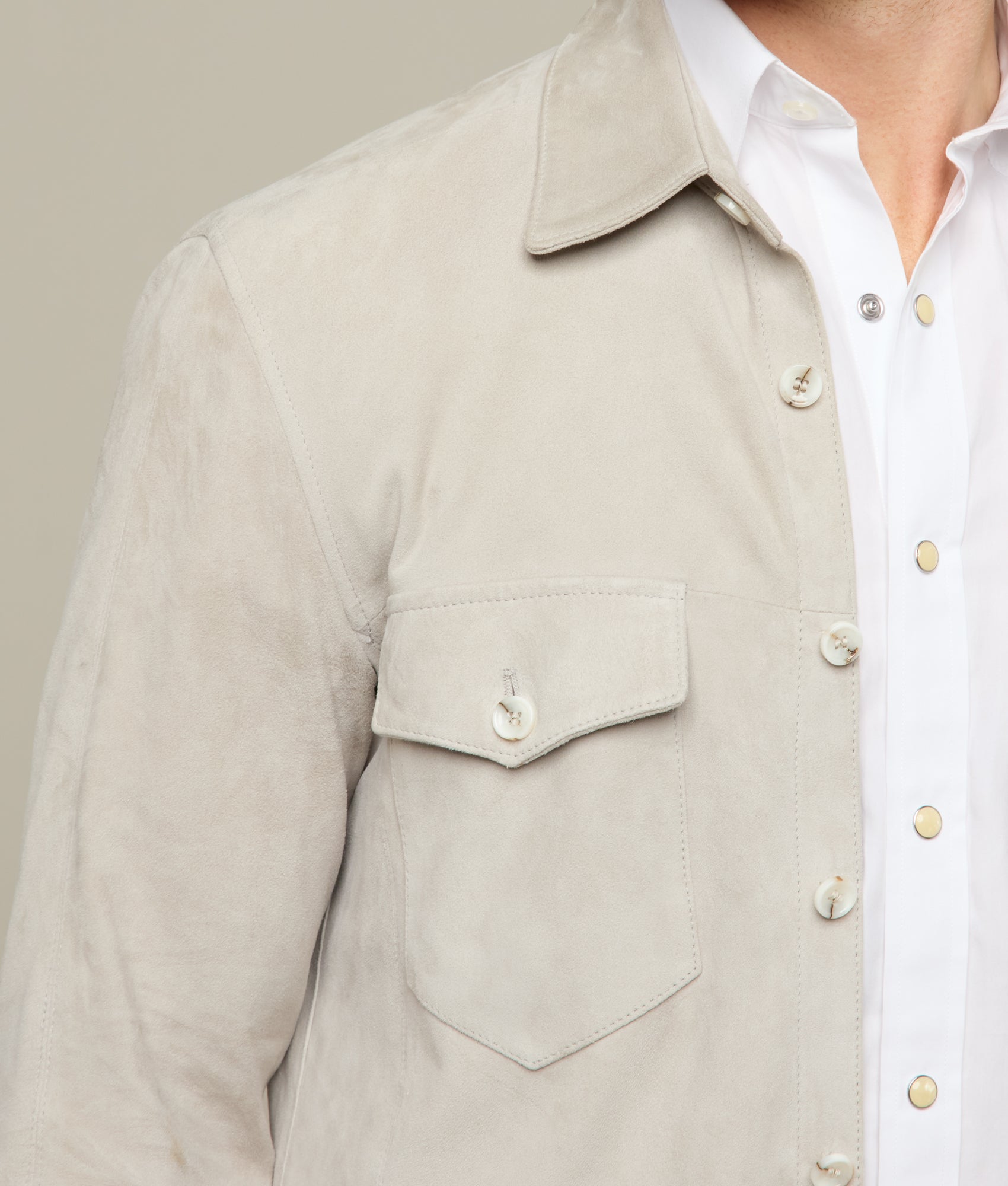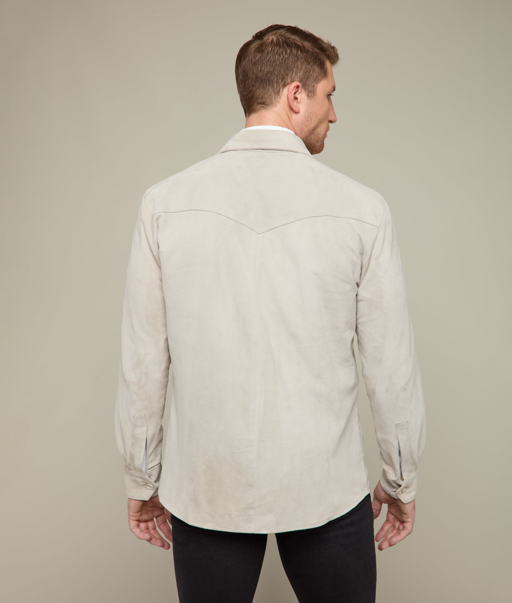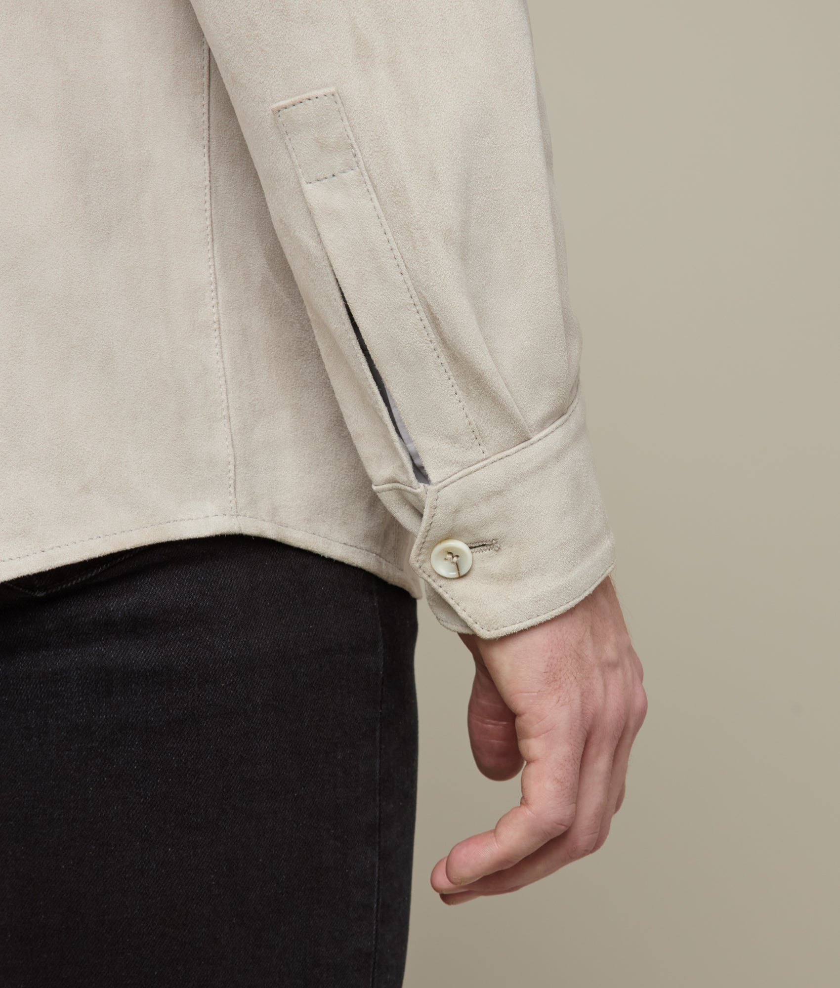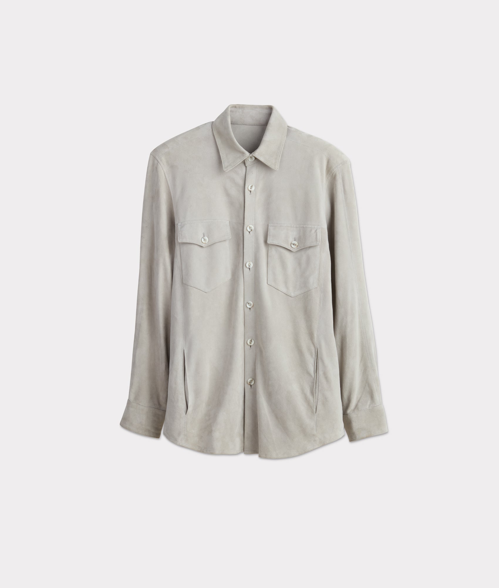 Crafted from luxurious 100% Vera Pelle leather. this Suede Overshirt embodies the finest Italian craftsmanship. Its sleek and refined design features dual chest pockets and functional side pockets. providing both style and utility. The button closure adds a refined touch. while the soft. tactile suede leather offers an elevated feel of sophistication. Ideal for layering or as a standalone piece. this versatile garment is designed to elevate any wardrobe. Made in Italy.