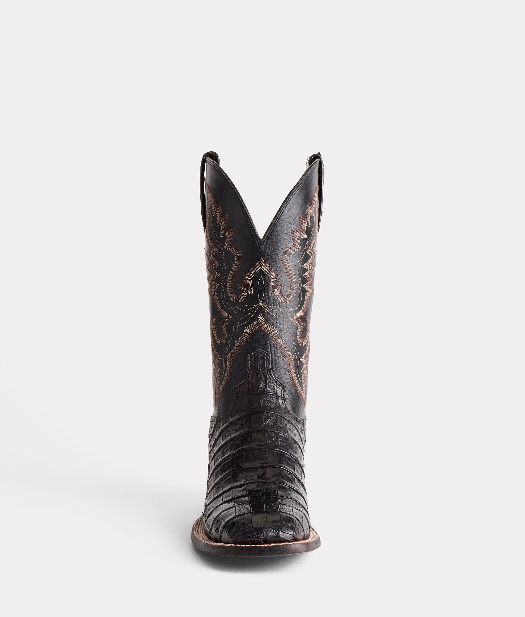 Inspired by the Westward Expansion and 19th-century pioneers. the Trent is a horseman silhouette intended to roam the frontier. Constructed from Smooth ostrich and Caiman Belly. this winged-vamp horseman radiates rustic poise. Every step taken with the Trent is a step back in time. Handmade in Texas.